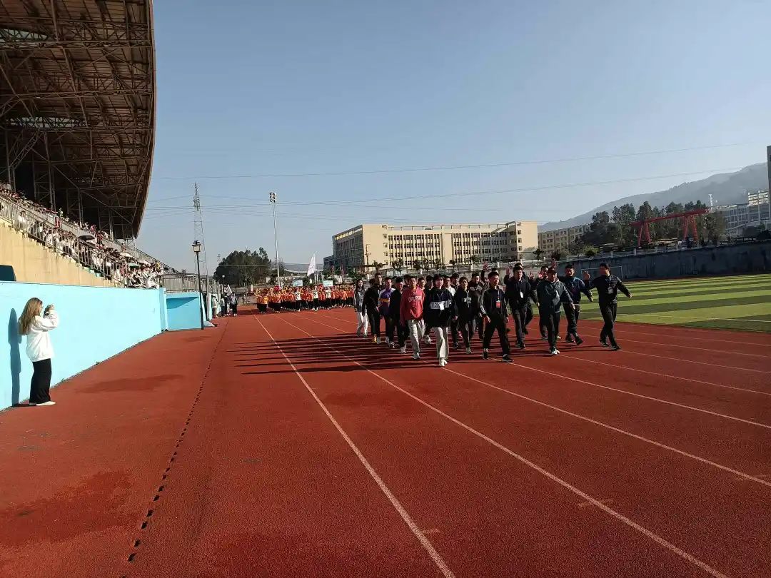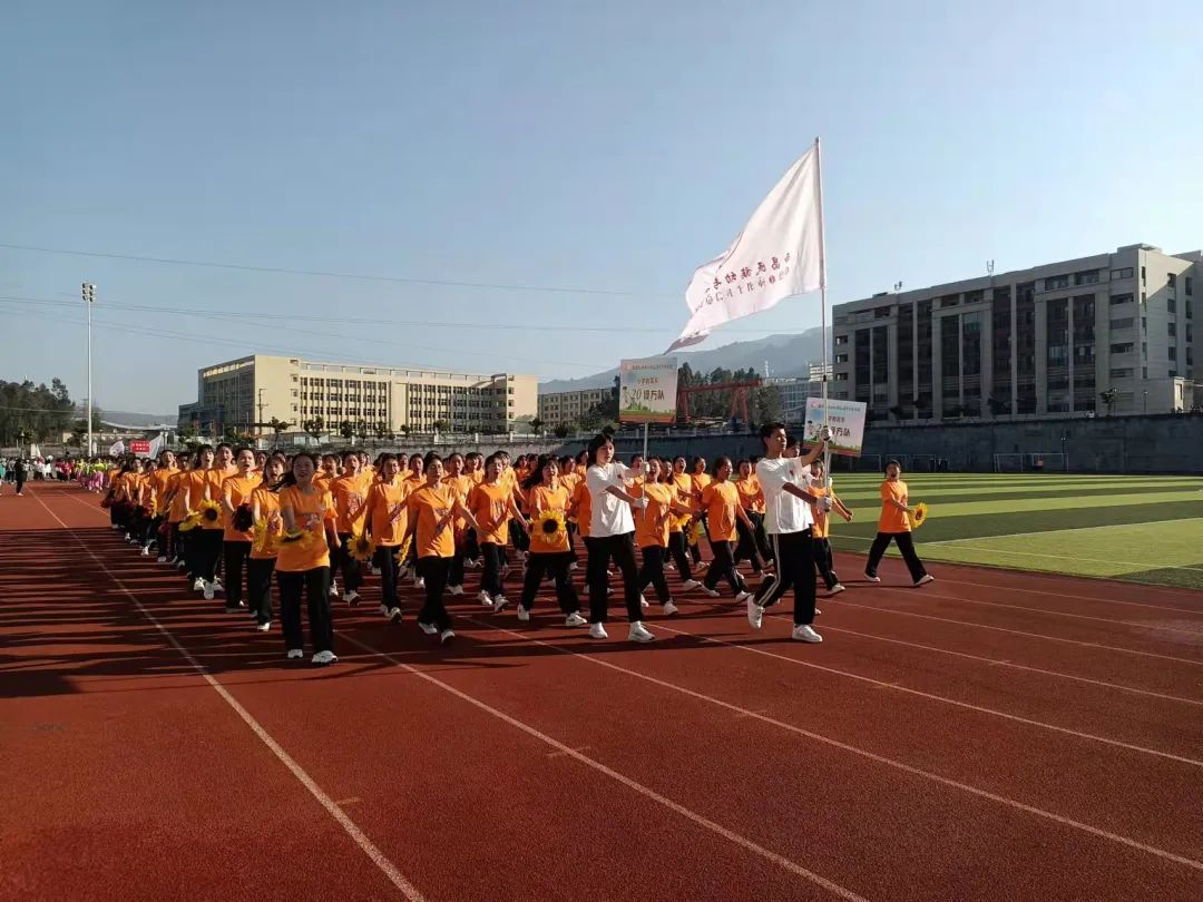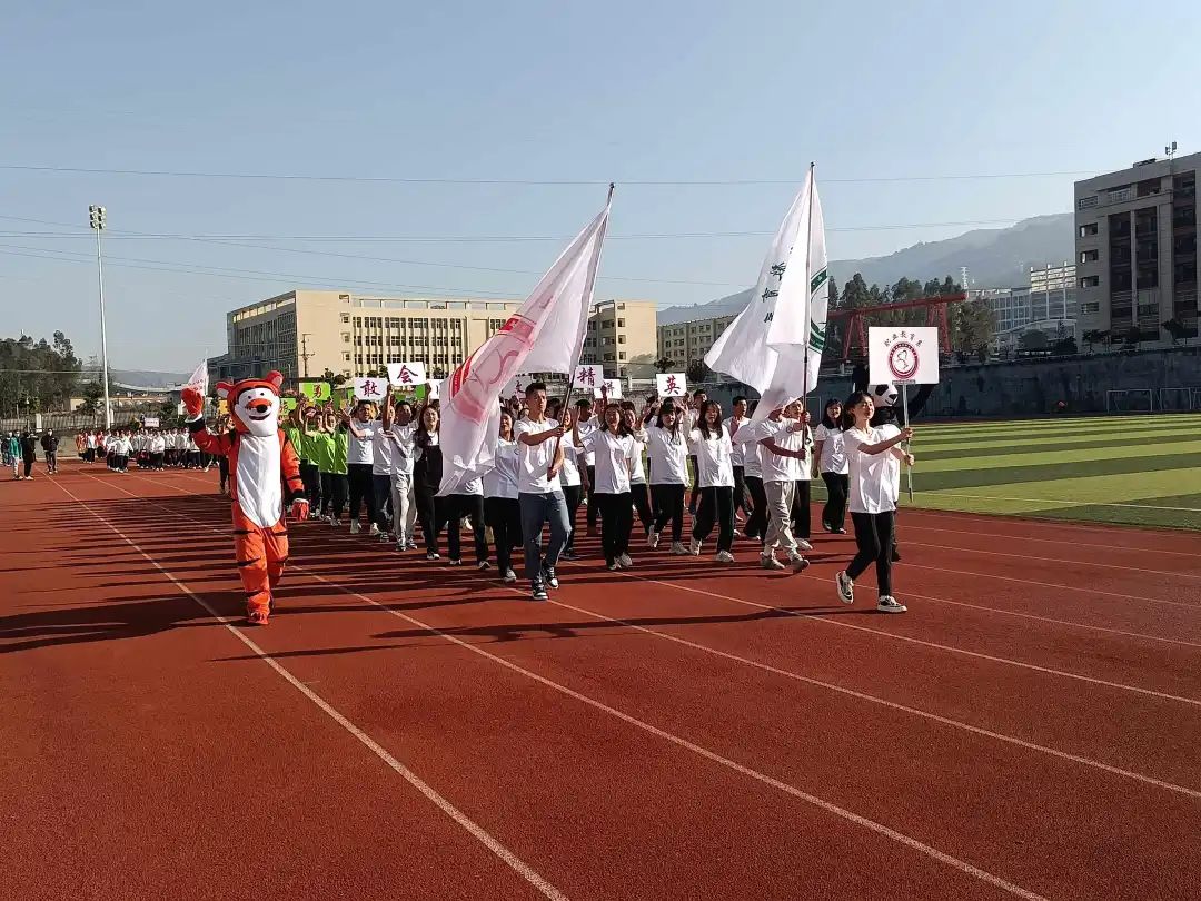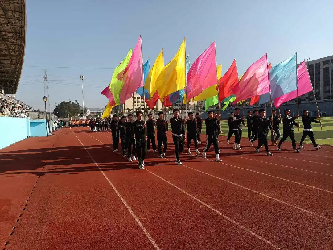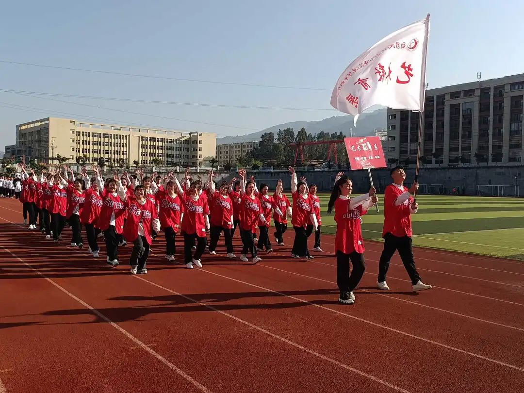 四月,这是一个梦想碰撞的季节,伴随着激昂的音乐声、同学们的欢呼声,国旗仪仗队、校旗方阵、裁判方队、各系部方阵用整齐的步伐和响亮的口号踏步入场。