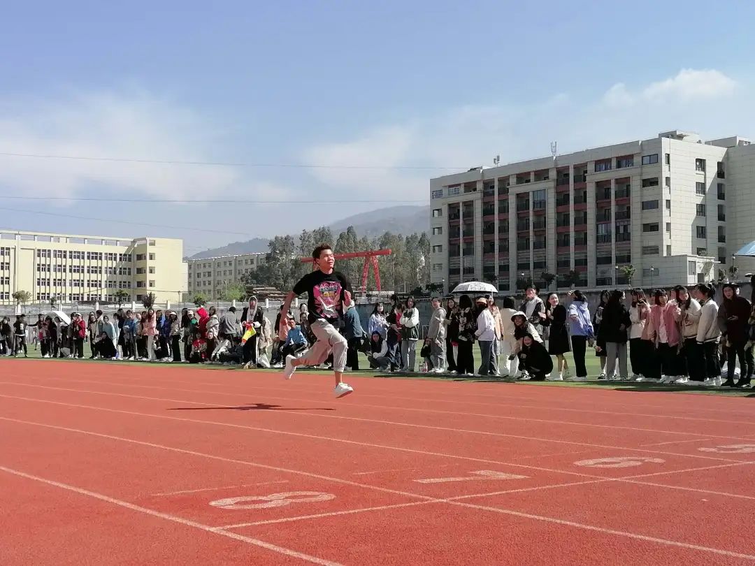 大跨步的前进,高腾空的飞跃,伴着裁判消散的枪烟,迎着温暖的春风,他们毫不退缩,奋力前进。