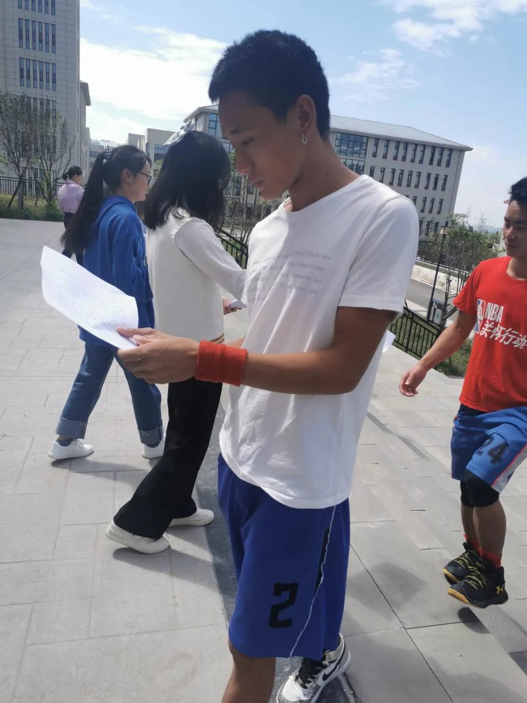同学们正认真阅读宣传手卡