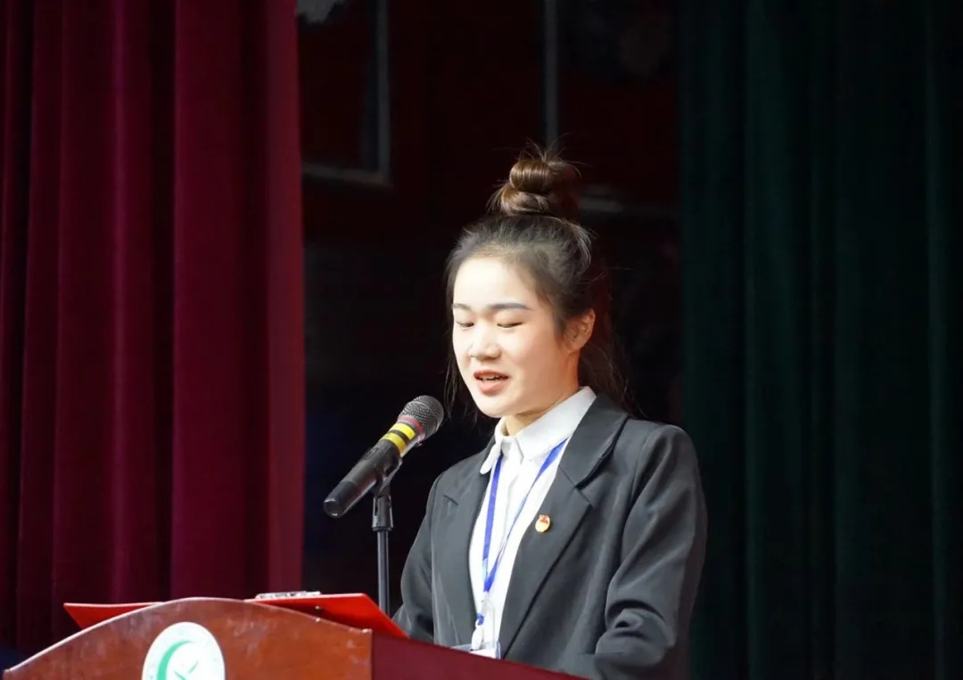 学校党委委员、宣传统战部部长邹春芸、学校团委书记沙马金哈、艺术教育系团总支书记刘燕 、公共管理系团总支书记周菊、 小学教育系团总支书记黄冕出席会议,全校208名学生代表、 170名团委学生干部参会。