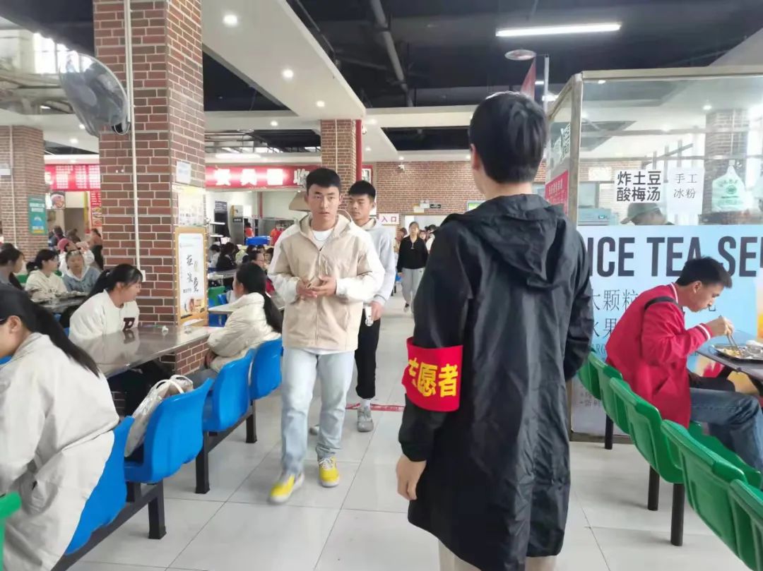 疫情防控我们在行动,我校青年学子“抗疫先锋队”积极维护现场秩序,监督同学们带好口罩。在食堂、超市、菜鸟驿站等公共场合都有着他们的身影。团委学生会干部们无处不在为同学们服务,虽然已经很疲惫但是戴上红袖章,便知道这是一种责任,一种动力。