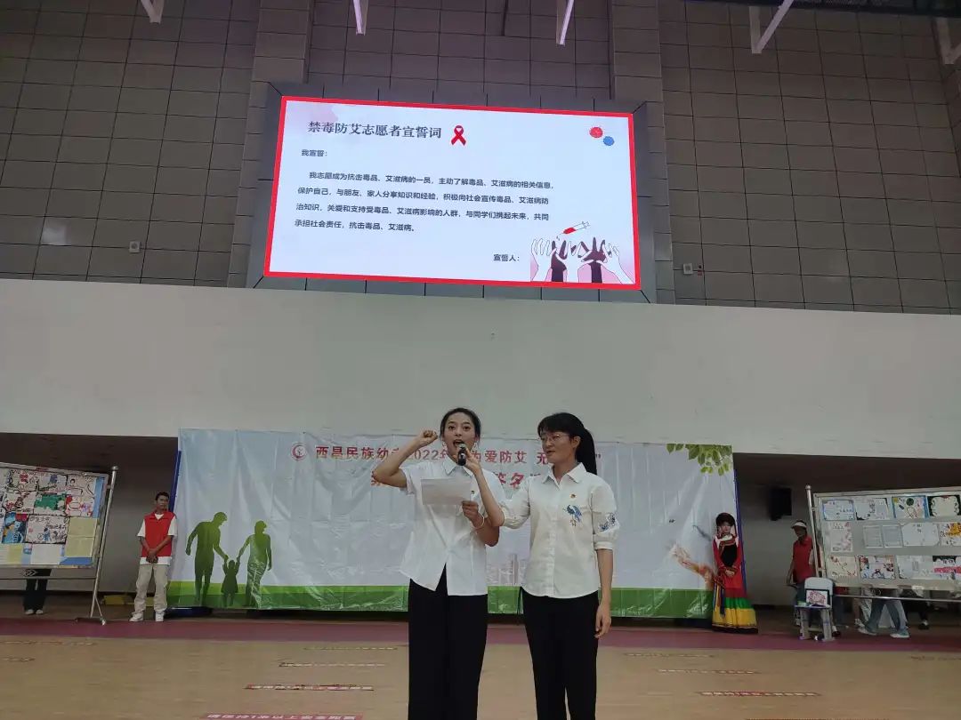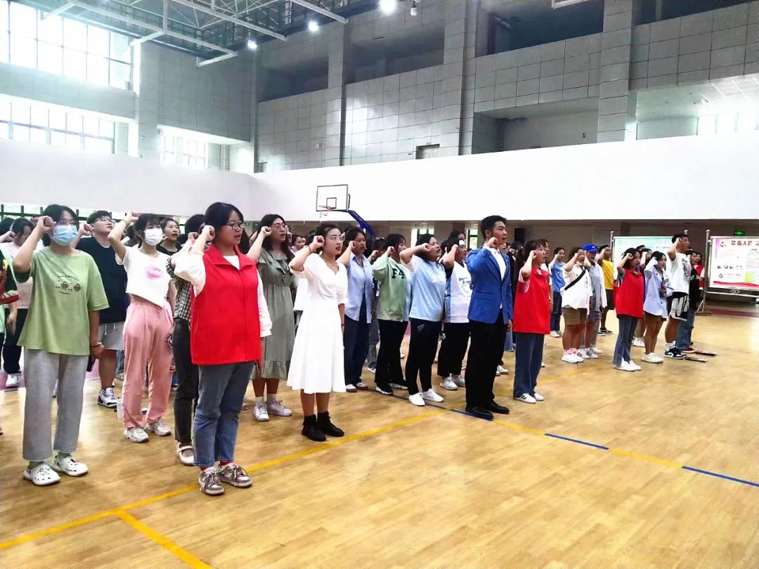 学生带领禁毒防艾宣传志愿者宣誓