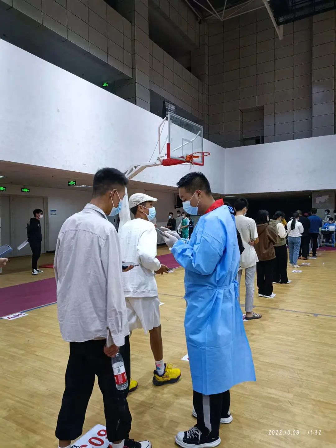 校内核酸检测组:负责监督同学佩戴口罩,间隔排队,配合医护人员进行核酸检测。