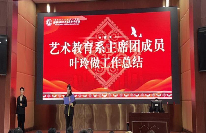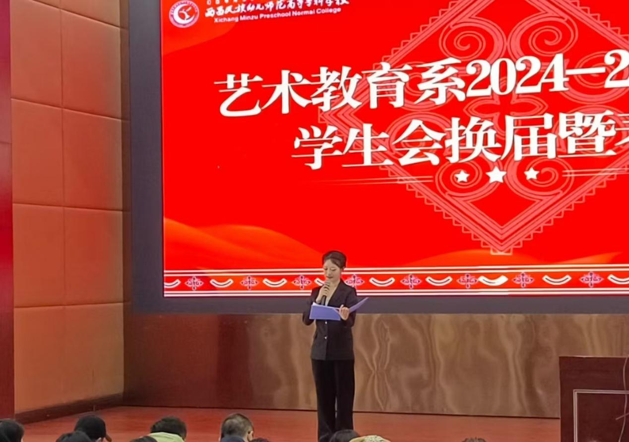 春风得意启新程,策马扬鞭勇奋进。为深入学习贯彻党的二十届三中全会精神、落实学生会组织改革方案,以期增强骨干队伍凝聚力和学生会工作的连续性,引导青年学子成为有理想、敢担当的优秀社会主义接班人。2024年12月17日,我校艺术教育系在学术报告B厅隆重举行了第五届学生会换届暨表彰大会。 艺术教育系副主任胡云贵、教师党支部书记孙荣、团总支书记苏小刚、工会组长李成,全体学生会成员以及各班团支书出席本次大会。