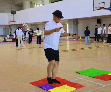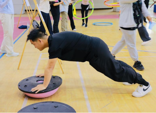 个人积分挑战赛好戏连台,十二项趣味比拼各有妙趣。投壶、沙包投掷考验精准度,颠乒乓球、单脚禅定锤炼平衡力;指压板跳绳、踢毽子解锁活力姿态,魔力转圈圈、协调王者挑战身体协调性;石头剪刀布将趣味博弈与运动结合,负重深蹲、转呼啦圈、平板支撑尽显体能与耐力。教职工们各展所长、大胆挑战,在一项项趣味比拼中突破自我、收获欢笑,每一次尝试都是对活力的诠释,每一次挑战都尽显师者风采。