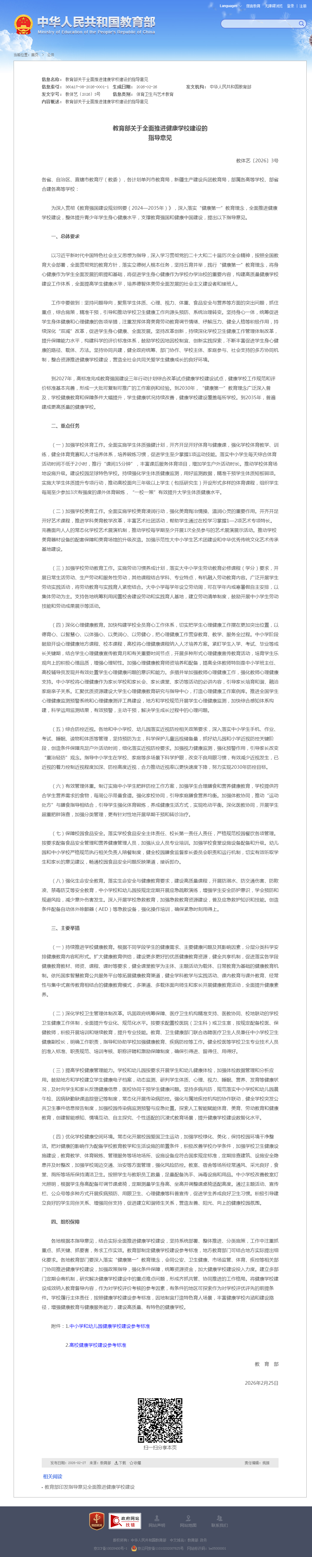 教育部关于全面推进健康学校建设的指导意见