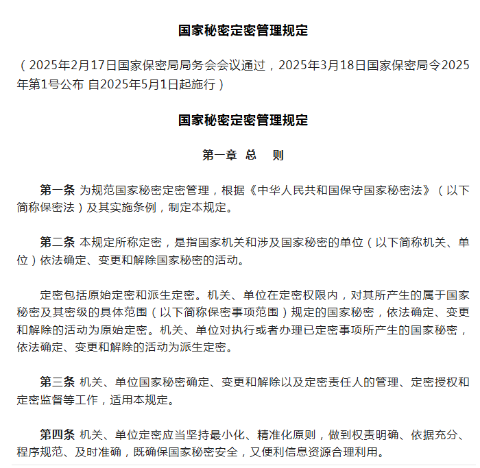 《国家秘密定密管理规定》