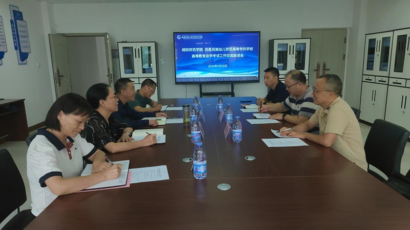 9月25日下午,绵阳师范学院继续教育学院院长彭军、副院长张零、党支部副书记谭军一行到我校,调研考察高等教育自学考试工作。双方在学校1214会议室举行座谈,西昌民族幼专副校长袁顶国、教师发展处副处长范星梅、督导办主任訚勇出席座谈。