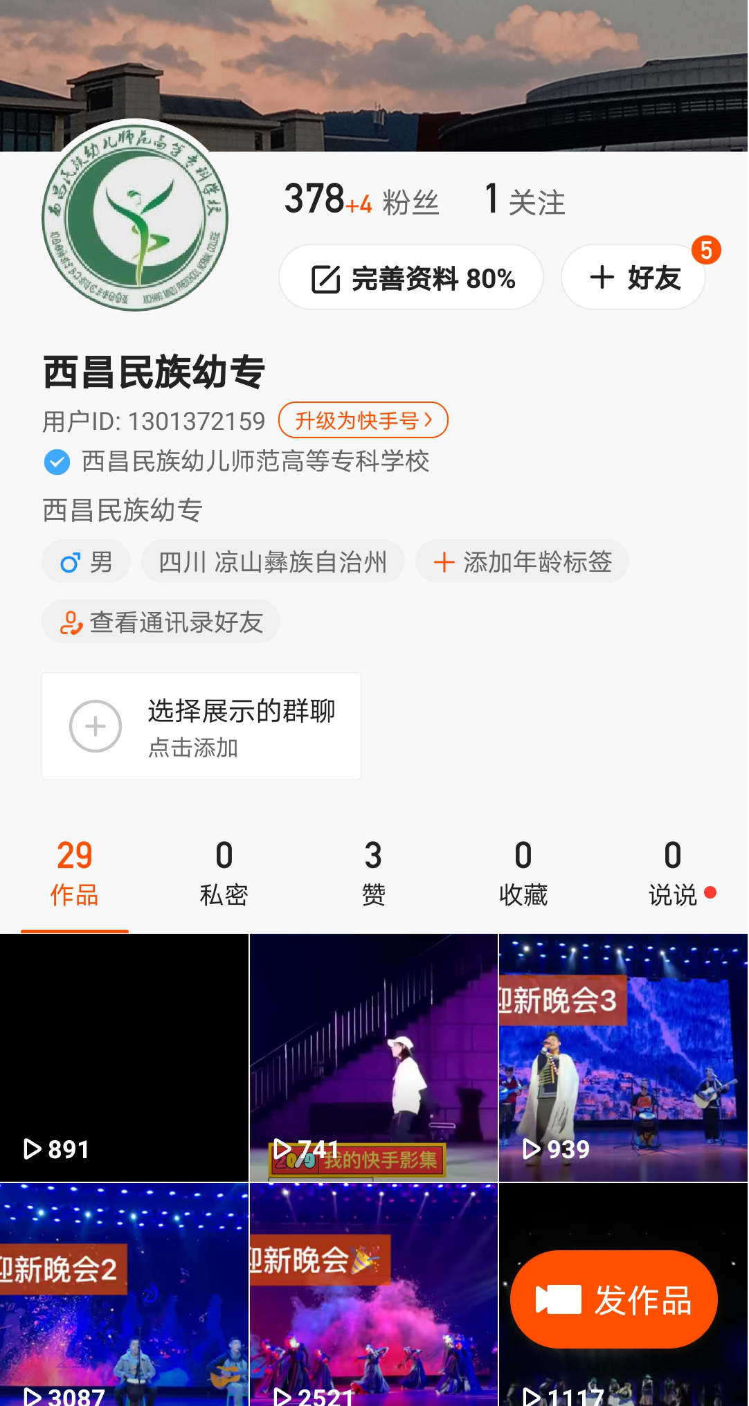 快手:“西昌民族幼专”
