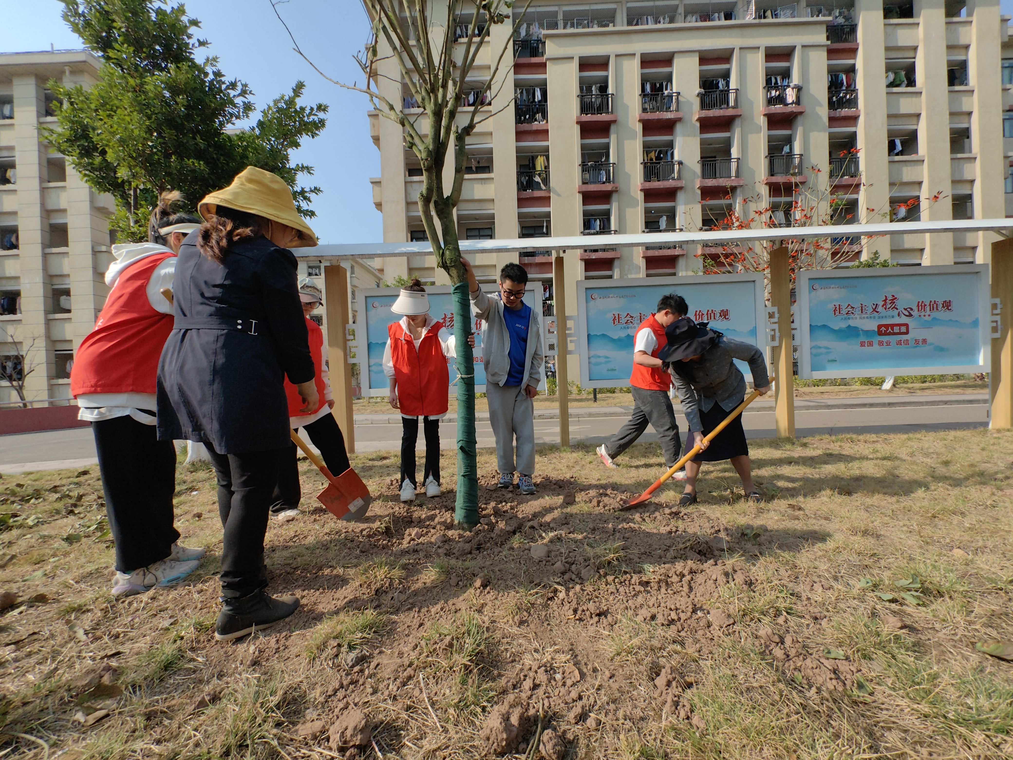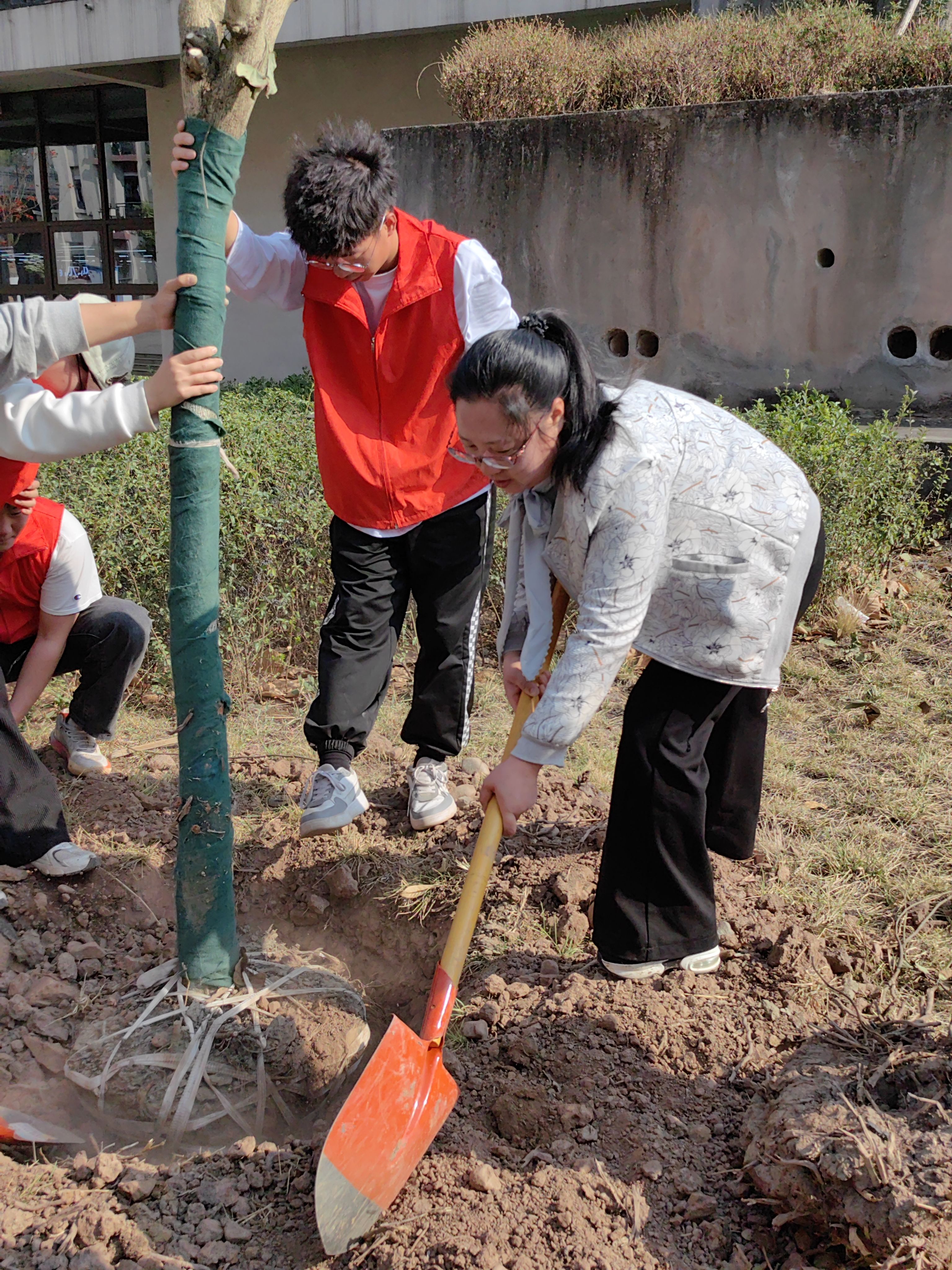 3月9日,我校开展以“种一棵树,绿一方土”为主题的植树活动。学校领导班子成员及党员代表、工会委员代表、知联会会员代表、各团总支团员代表参加了此次植树活动。
