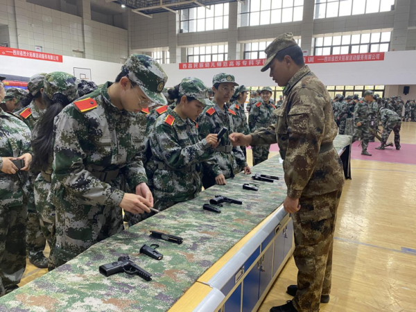 本次培训分为枪械组装、模拟射击、乘坐装甲车、消防模拟灭火和逃生培训演练,通过场景模拟学习相关军事技能和消防安全知识。