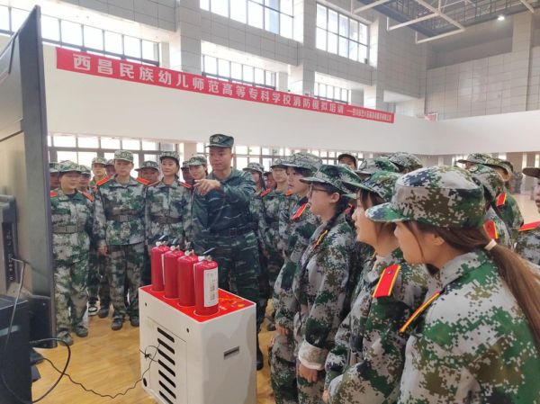 培训中,培训教官结合校园实际情况,向学生讲解枪械组装、模拟射击技巧,火灾预防的基本措施,火灾现场逃生自救的基本技能,灭火器的正确使用方法。