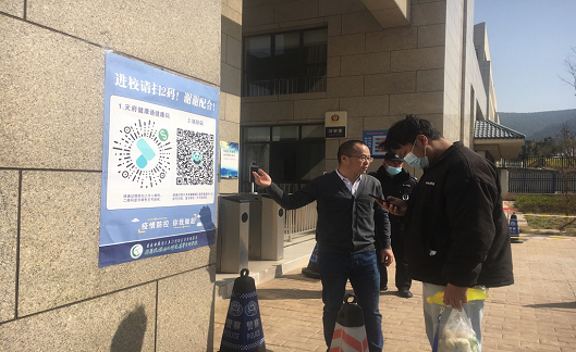 四、优化门岗服务,做到进校人员分流。武装保卫处采取有力措施保障27日、28日学生返校高峰入校安全有序。一是在校门外设置警戒线隔离装置,做到人和车辆分离;二是进校人员分流,教职工和后勤人员、车辆一律从西门进出,返校学生统一从南门进出;三是启用南门人脸识别测温系统;四是校门口粘贴“二码”(天府健康通和学校场所码),入校学生必须扫健康码、场所码,并出示学生证或出入证。五是保卫处全员加班,值守门岗,指导和协助保安做好学生返校工作。