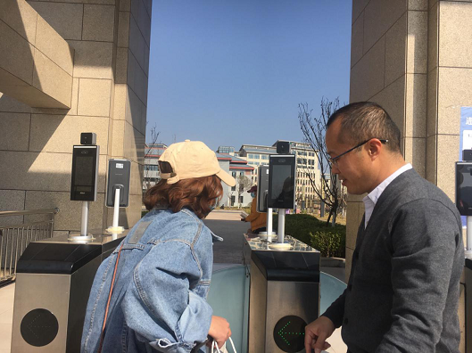 指导学生使用人脸识别测温系统