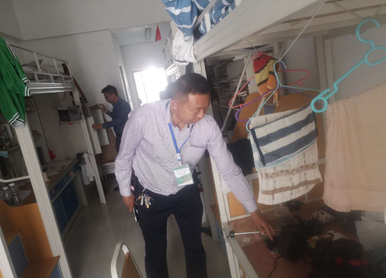 大学生公寓管理历来是学校安全保卫的重点和难点,临近期末,武装保卫处继续加大学生公寓,特别是男生公寓的管理和巡查力度。牟勇处长对学生公寓管理做了细致分工和安排:对保卫处人员进行排班分组,采取日常常规检查和突击检查的方式,重点对男生寝室进行巡查。