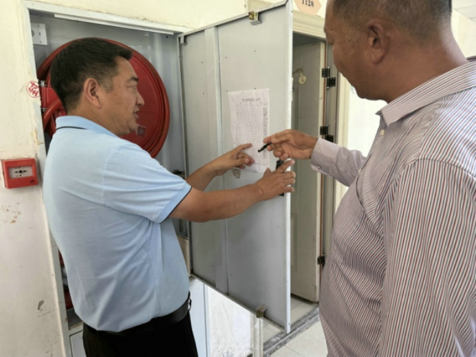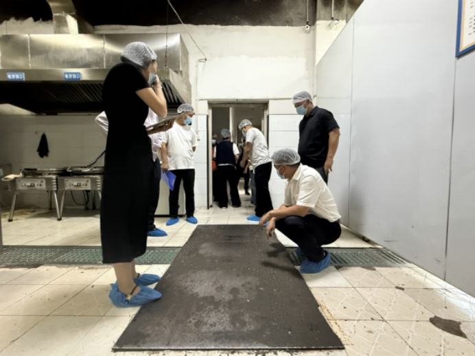 在学生食堂,排查组重点对食品安全和消防安全进行了严格检查。在食品安全方面,重点查看了后厨操作间的卫生状况、食材储存管理、明厨亮灶、食品留样制度的执行情况、餐具清洗消毒流程以及油烟管道定期清洗记录等。吉付约古副书记强调,食品安全是校园安全的底线,必须严格执行各项规章制度,确保来源可溯、过程可控、责任可究,守护师生“舌尖上的安全”。在消防安全方面,检查组查验了厨房燃气设备、消防设施器材的配备与有效期,询问了工作人员消防安全知识和应急流程掌握情况,并检查了监控系统的覆盖范围和运行状态,确保无死角、全时段监控。同时,也对食堂就餐区域的地面清洁卫生提出了明确要求。
