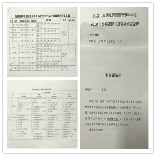 1月10日上午9时,学校在行政楼1508会议室组织召开“西昌民族幼儿师范高等专科学校2019年校级课题立项评审会”,对初审通过的26个科研课题进行了专家评审。