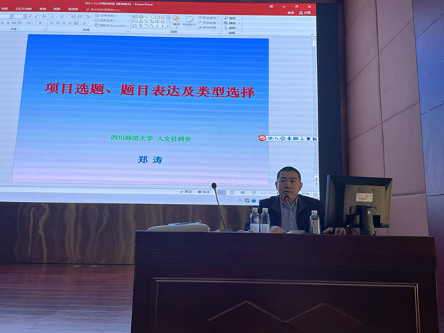 12月29日,西昌民族幼专第二届校园文化艺术节之系列学术讲座第1讲在学术报告厅A厅举办,四川师范大学人文社科处副处长郑涛教授应邀到校以《项目选题、题目表达和类型选择》为题做报告。