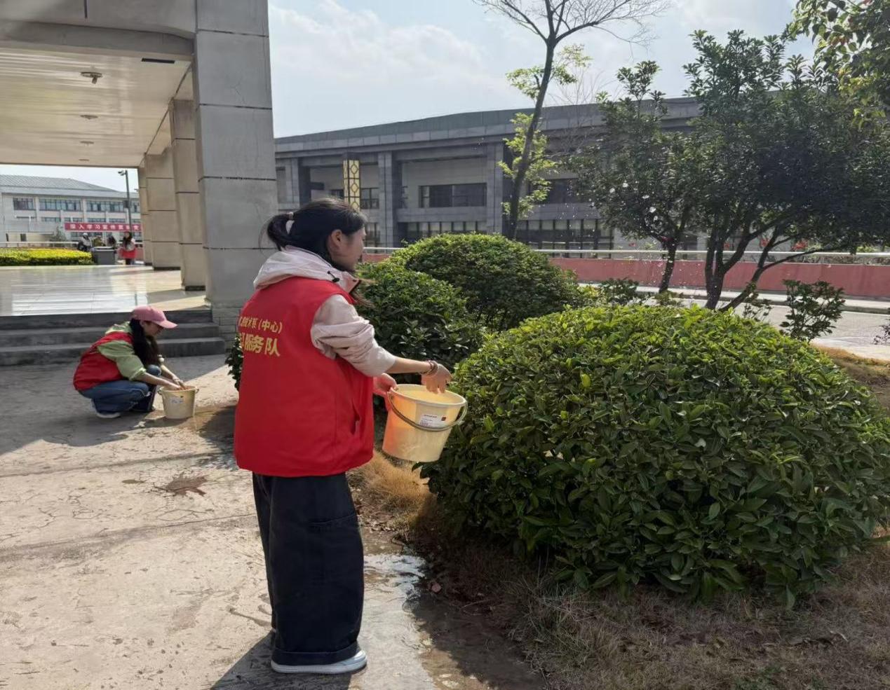 活动伊始,团总支学生干部详细讲解了本次活动的任务内容、操作规范及安全注意事项。随后,各小组有序领取水桶、劳保手套等工具,在领队带领下分区域开展绿化养护工作。同学们分工协作、默契配合,认真完成树身污渍擦除、树周垃圾清理、绿植浇水等任务,现场气氛热烈而有序,充分展现了当代青年学生热爱劳动、乐于奉献的精神风貌。