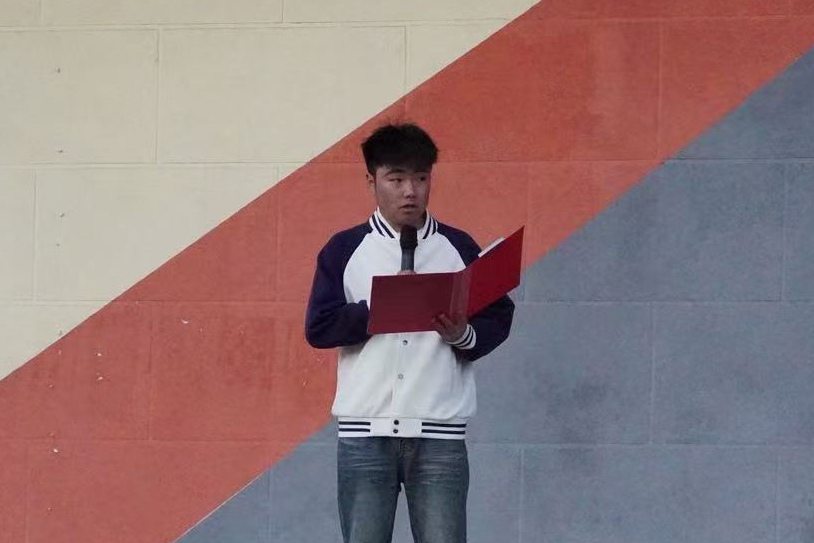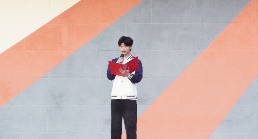 升旗礼毕,学生代表黄靖作国旗下演讲。他结合个人成长感悟,回顾祖国发展的辉煌成就,表达新时代青年与祖国同频共振的坚定信念。他号召同学们珍惜韶华、勤奋学习,以实际行动践行爱国之志,在奋斗中绽放青春光芒。