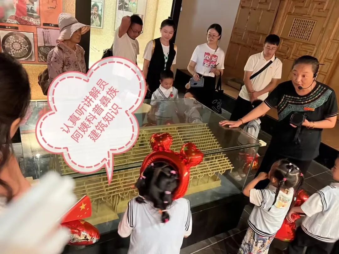合影结束后,大家有序进入博物馆,在解说员的带领下,幼儿在感受凉山彝族传统文化的同时,能够进一步在今昔对比中,理解今日国泰民安的来之不易,持续深入推进发扬红色传统,培养孩子们爱国爱家的情怀。