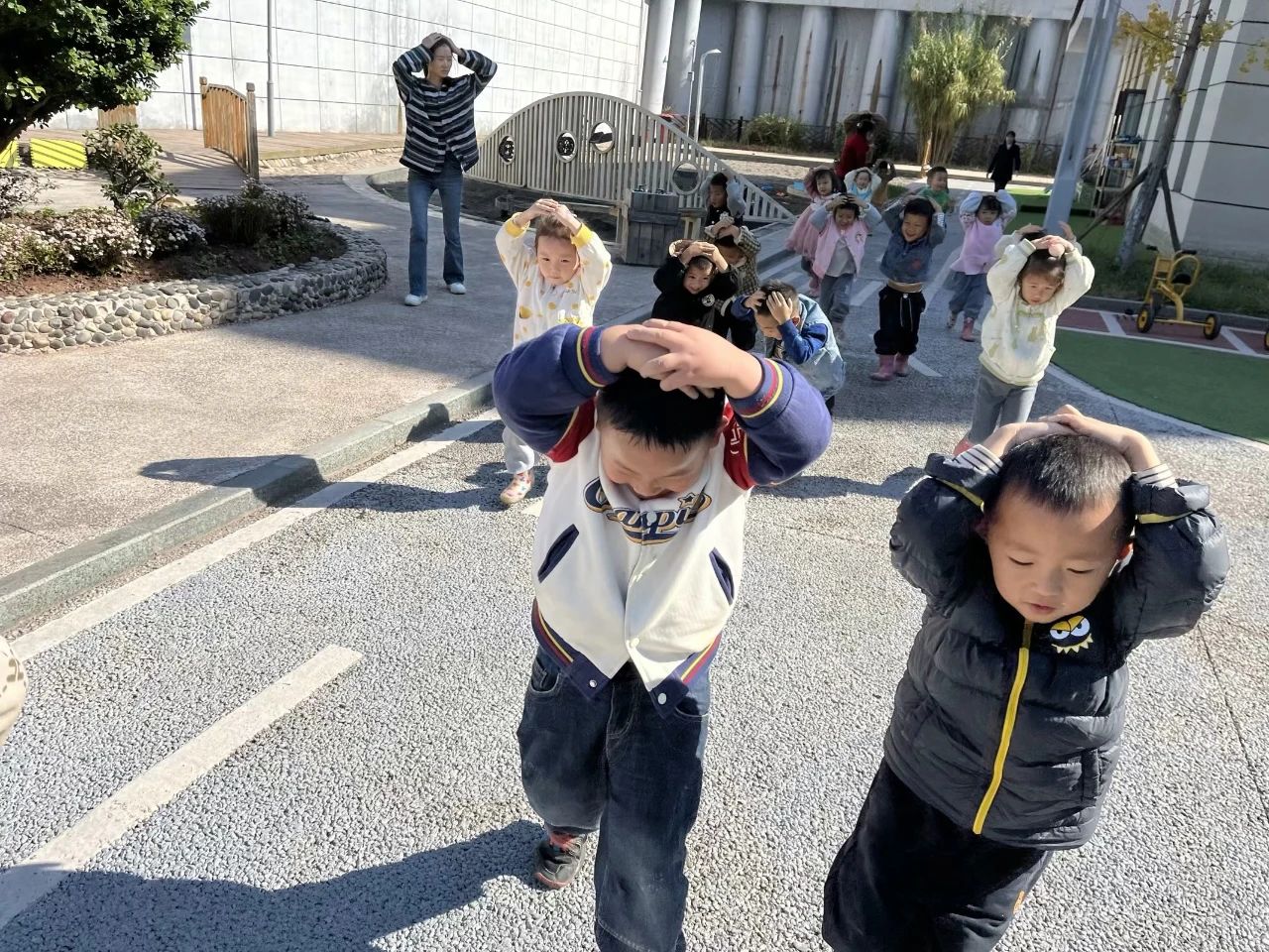 警报解除后,保教主任孟老师对本次活动作出了简单的总结,表扬小朋友们沉着勇敢、反应迅速、疏散有序。