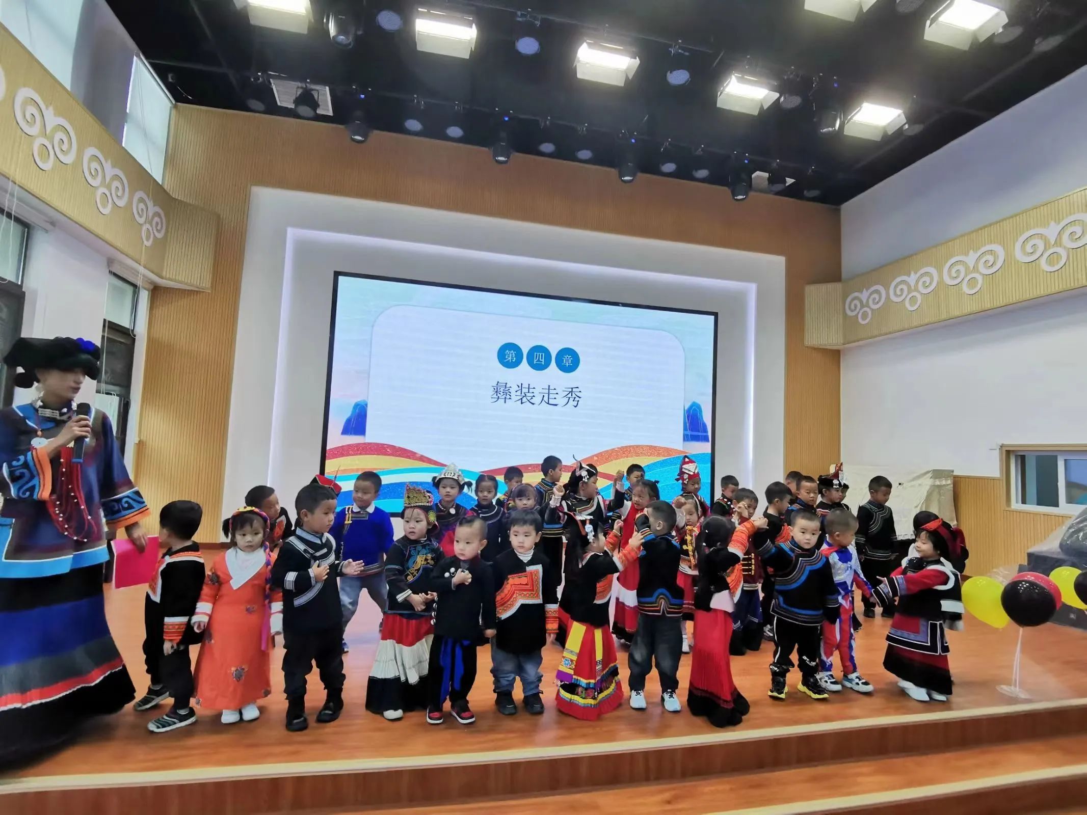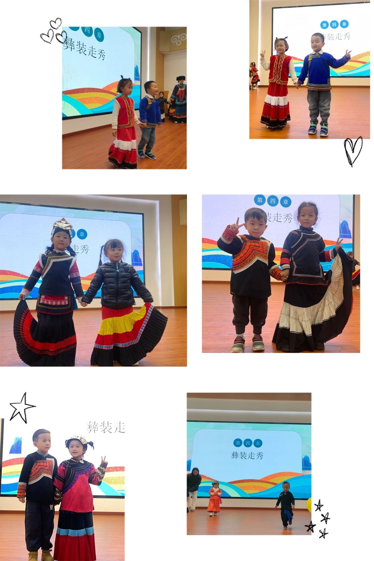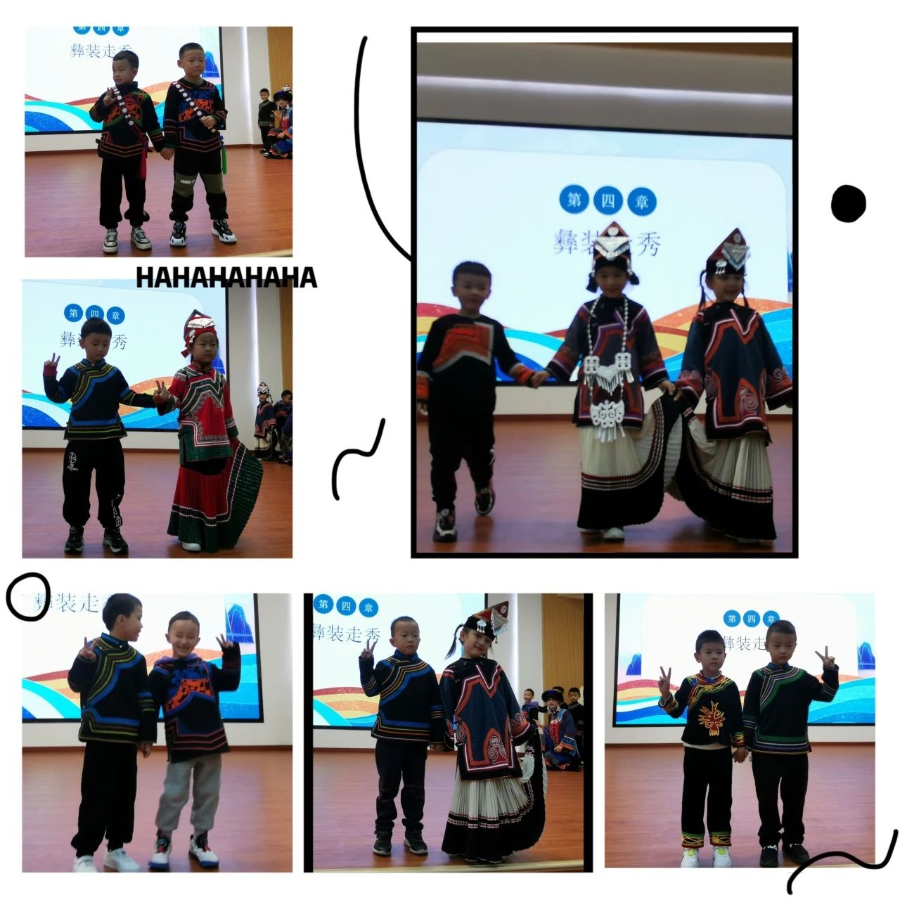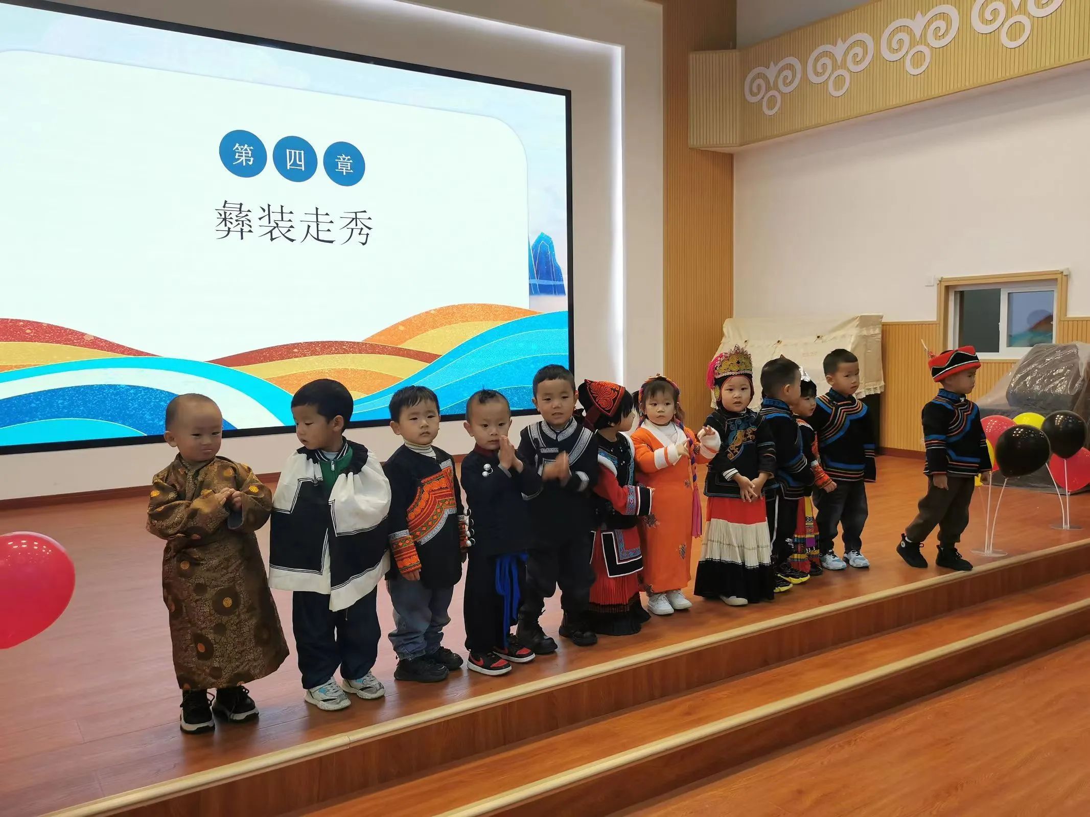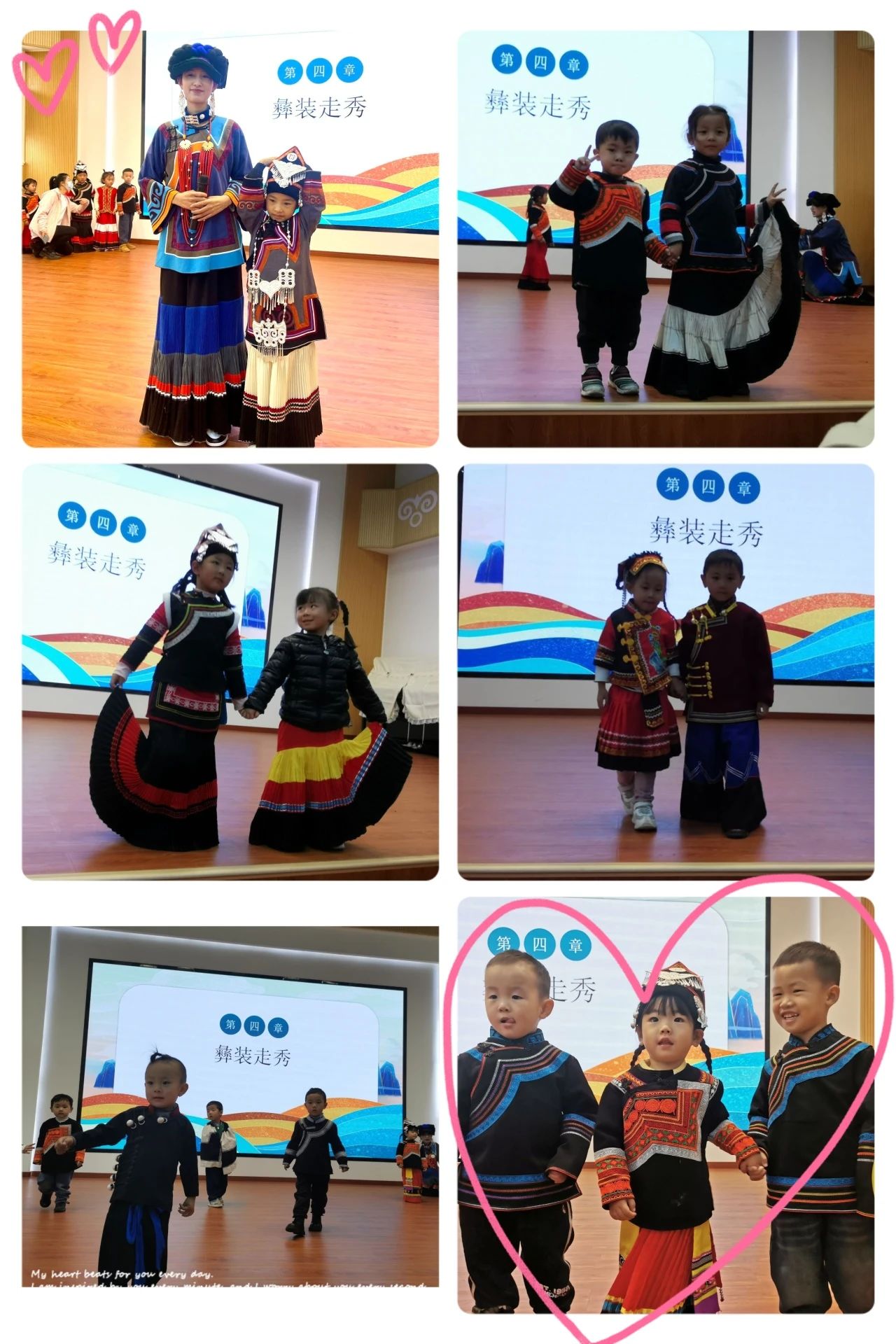 今天小朋友们都身着民族服饰,那怎么少得了一场亮相呢!彝族服饰真好看!