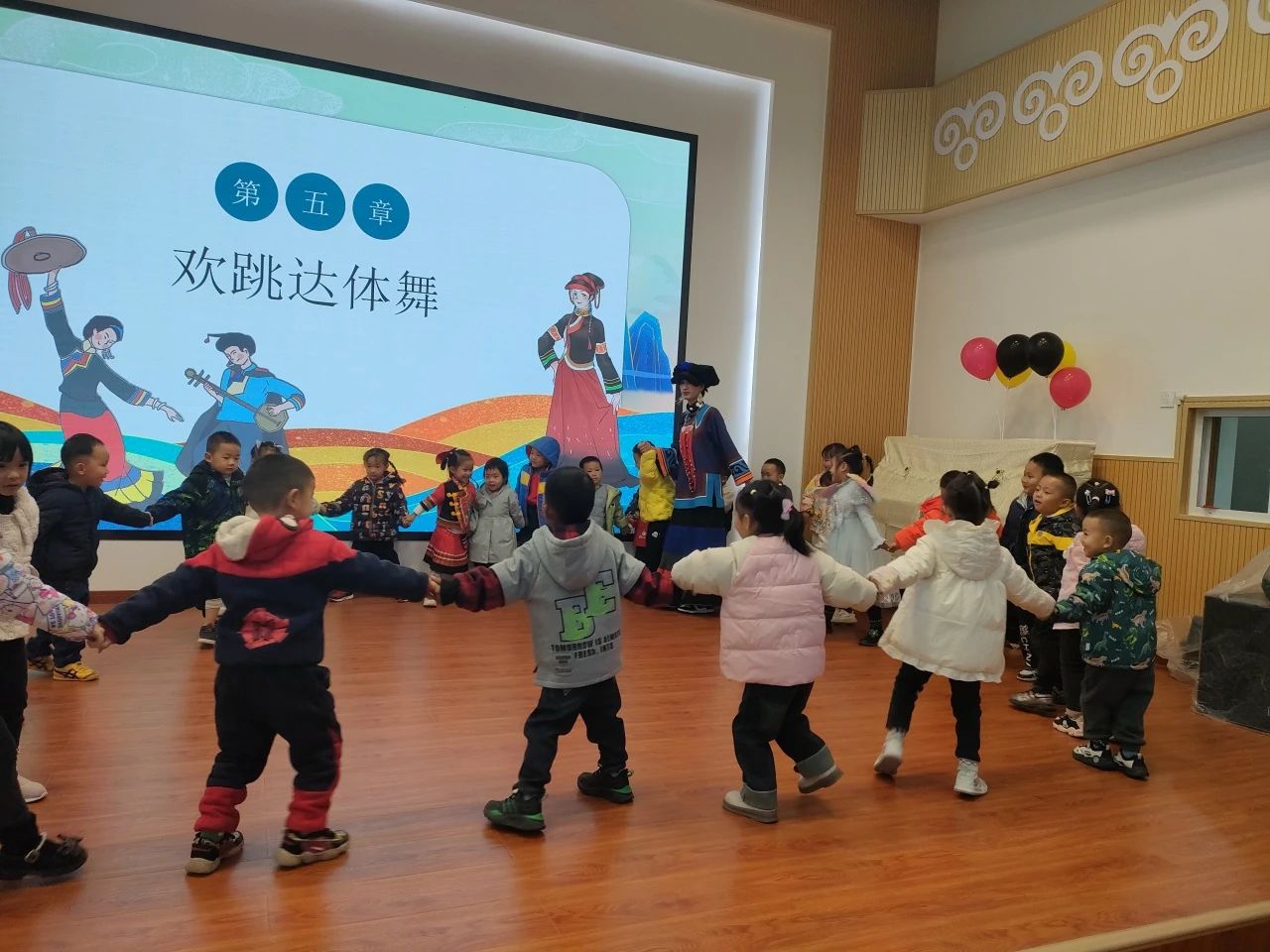 伴随着优美动听的音乐,孩子们和老师一起跳起了达体舞,感受节日欢乐的氛围