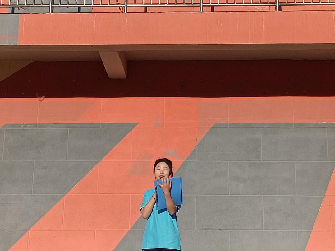 接下来,2024级4班姚霈琳同学以《在童心里遇见未来》为题发表国旗下演讲。结合上周幼儿园见习经历,她生动讲述了在幼儿园中的见闻和感悟,坦言“蹲下身才能看见真正的童年”。对于即将到来的全校运动会,姚霈琳同学以运动场跑道作比学前教育之路,号召全系同学在运动会中展现“幼教人特有的柔韧与力量”。