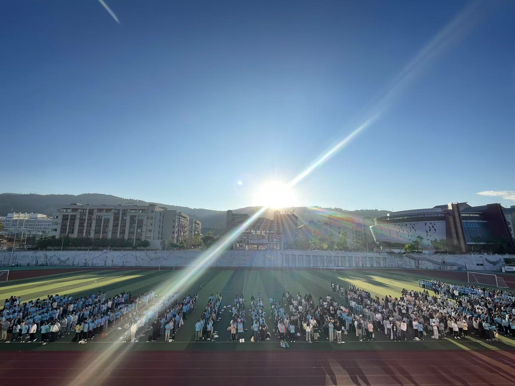 2025年4月21日清晨7:30,西昌民族幼专学前教育系百名师生齐聚运动场,在金色朝霞中举行“以实践铸师魂,以拼搏展风采”主题升旗仪式。师生们身着整齐制服,以饱满的精神状态共同见证这一庄严时刻,在激昂的国歌声中开启崭新篇章。