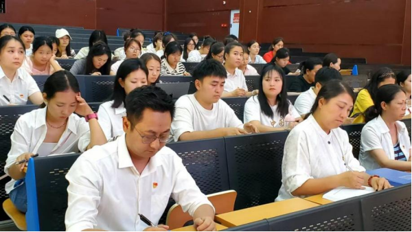 2025年7月1日,学前教育系党总支书记余成红在学术报告A厅为学前教育系党总支部全体党员、学生入党积极分子代表讲授专题党课。