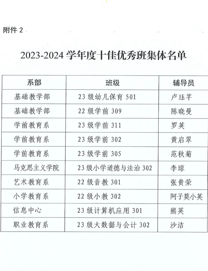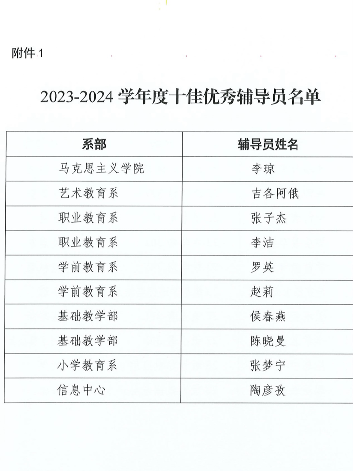 ——学前教育系2023-2024学年度“十佳优秀辅导员”“十佳优秀班集体”