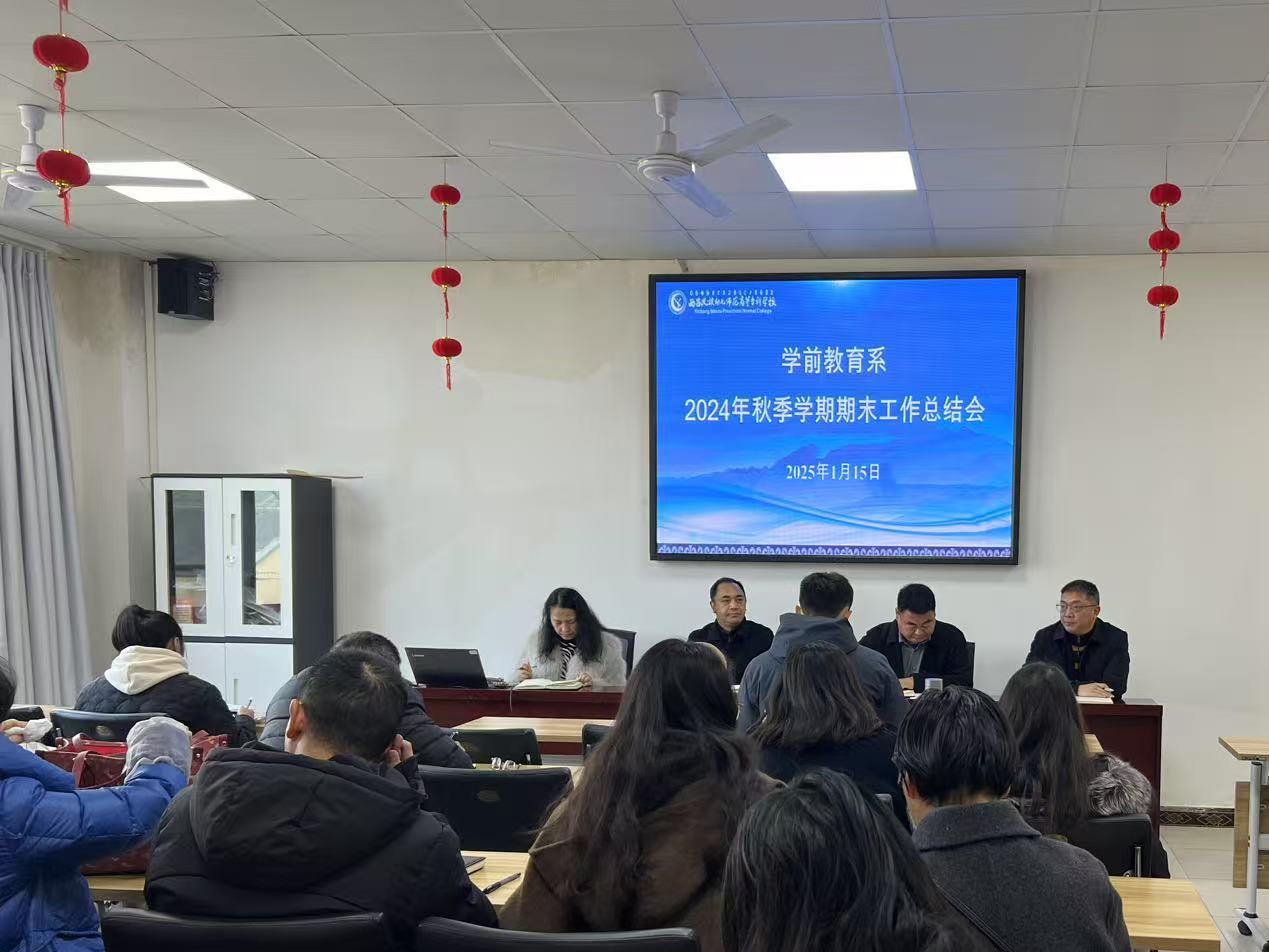 2025年1月15日,西昌民族幼儿师范高等专科学校学前教育系召开2024年年度工作总结会。校长马辉和学前教育系三位主任,带领系部全体教职工对2024的工作进行回顾、总结和展望。
