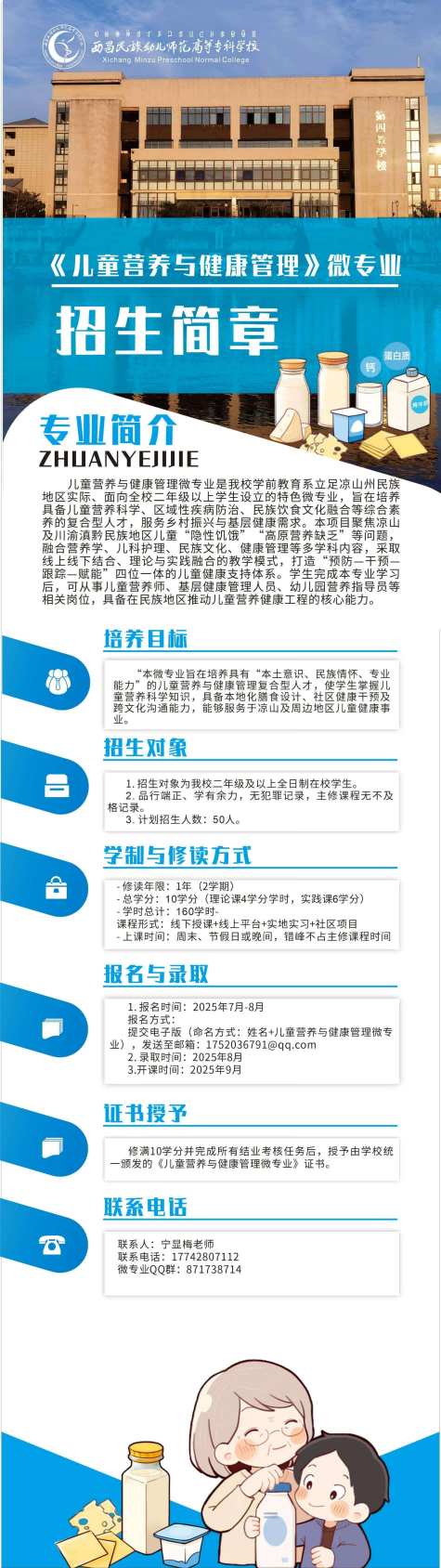西昌民族幼儿师范高等专科学校 《儿童营养与健康管理》微专业招生简章(2025年)