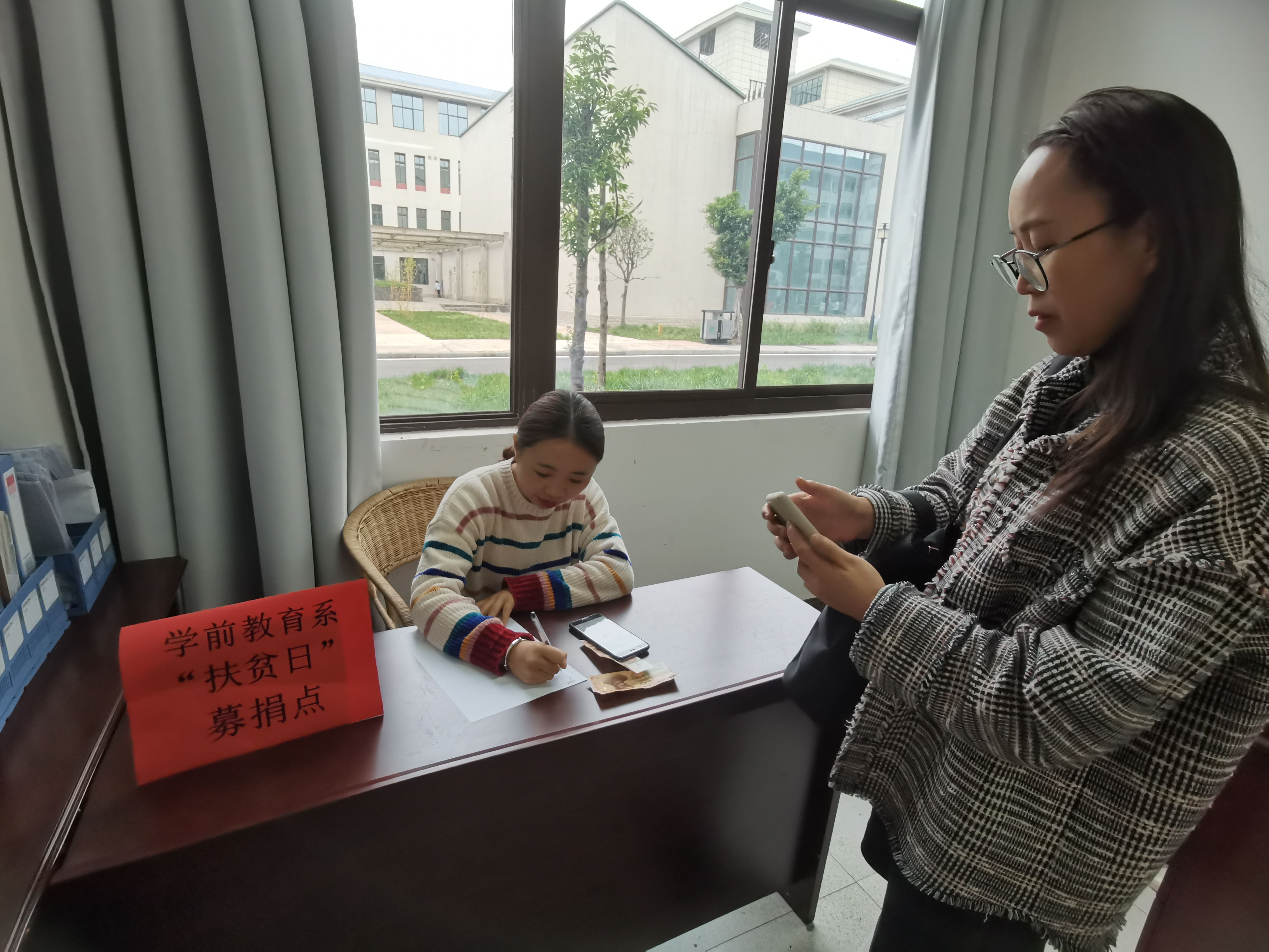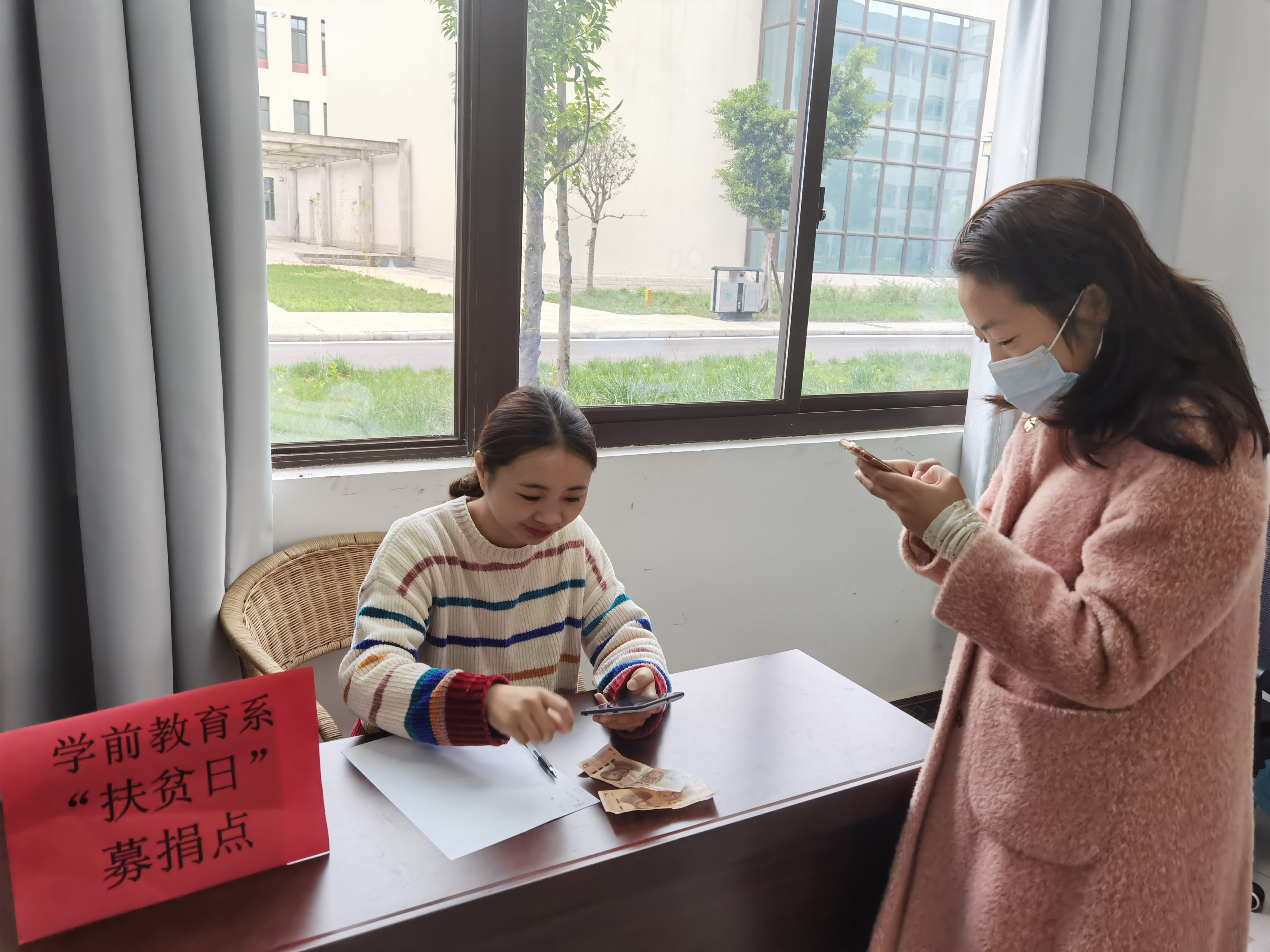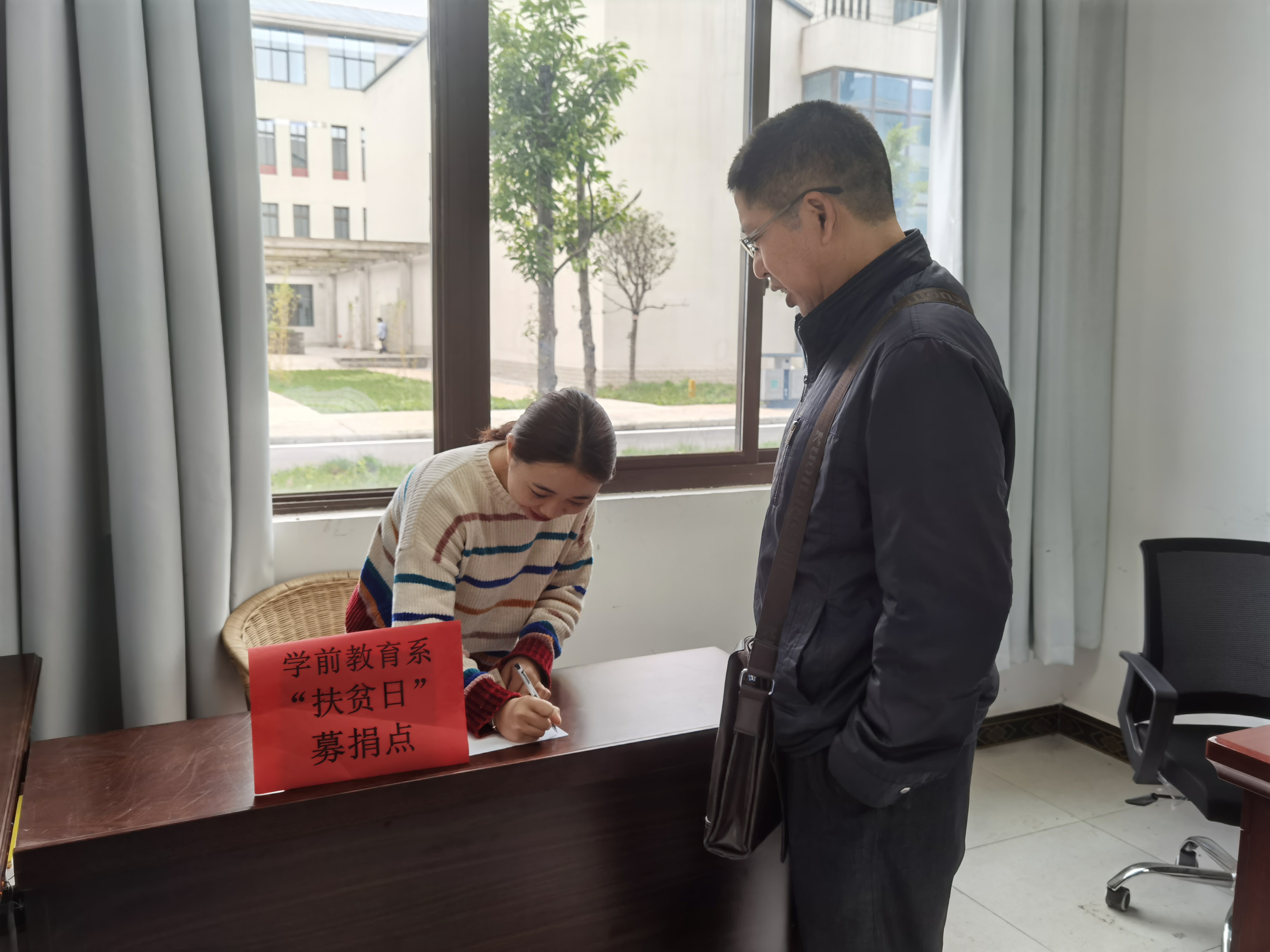 为引导学前教育系全体教职工关注贫困问题,关爱贫困人口,关心扶贫工作,按照依法合规、节俭务实、注重实效的原则,在国家“扶贫日”到来前夕,学前教育系于2020年10月16日在系部4104办公室设立募捐点,开展了“扶贫日”募捐活动。