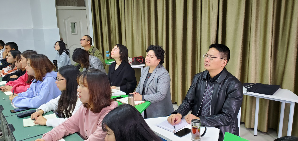 教室最后一排,还有一群认真又“特殊”的同学——学校党委书记石芳、纪委书记沙德康一行全程参与此次课程,与同学们共同融入来自大洋彼岸的课堂。