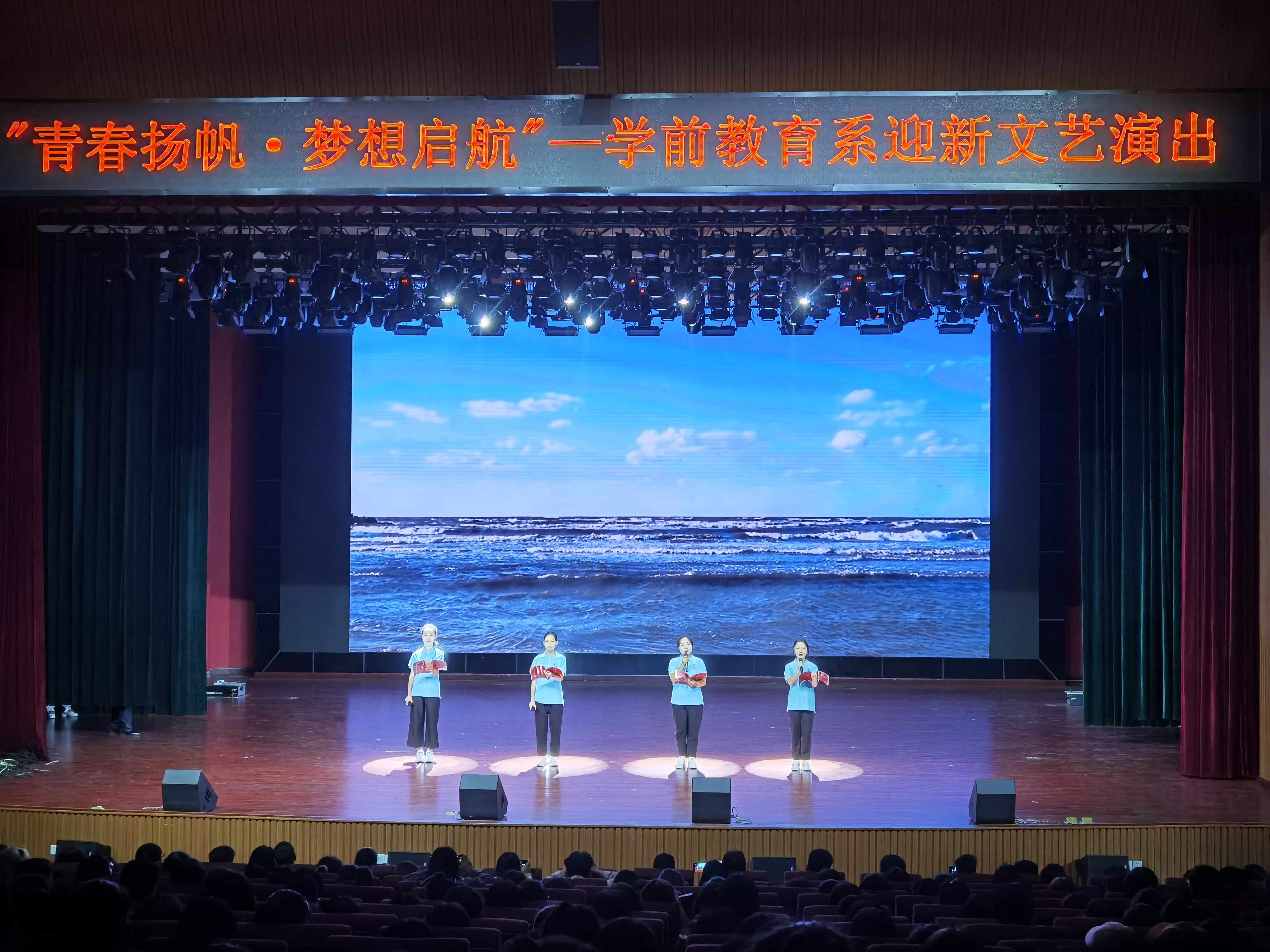 晚会分为“青春扬帆”和“梦想起航”上下两篇,2020级新生在学前教育系魏衍辉书记的带领下宣读师范生誓言,立德明智。