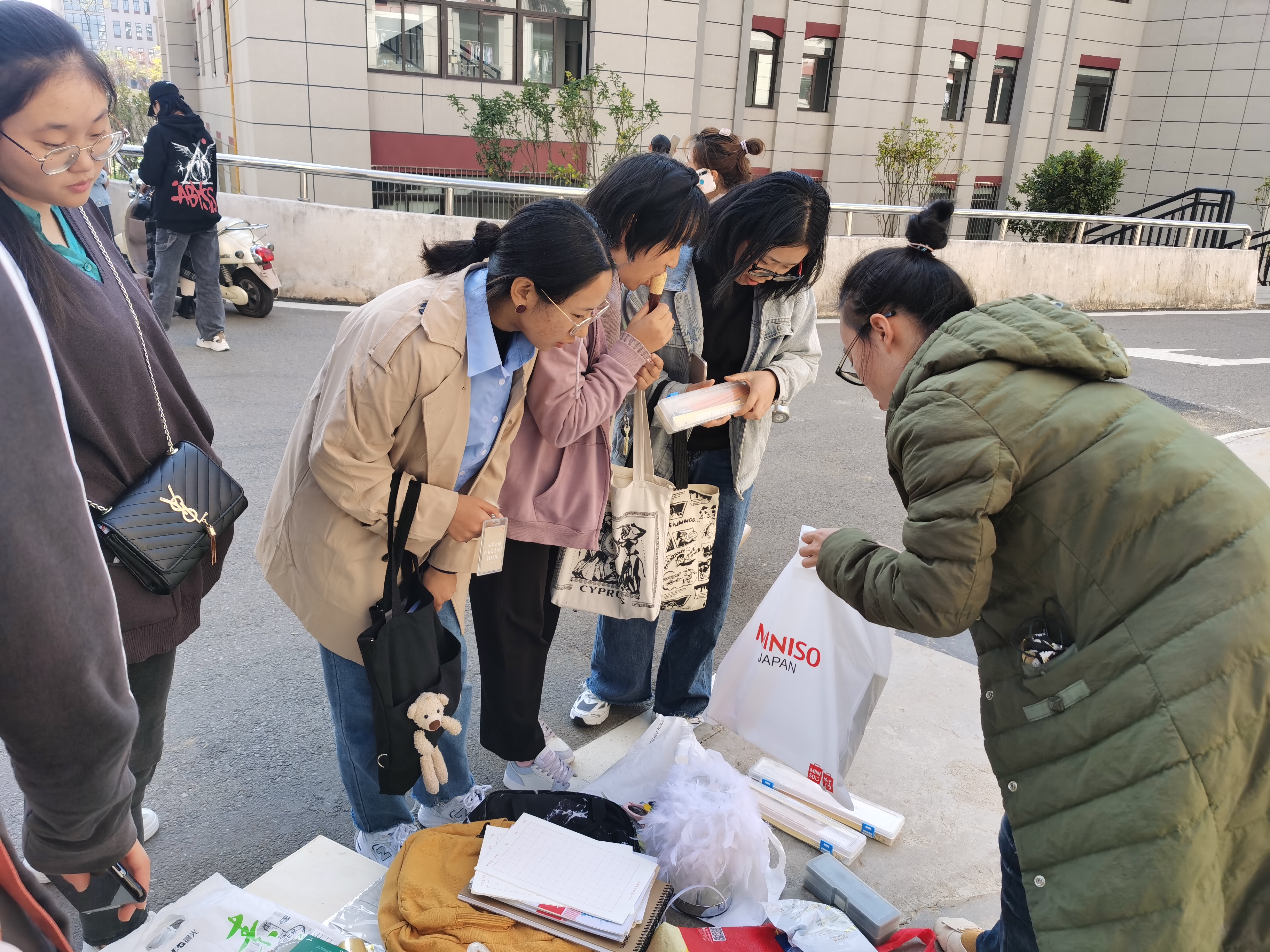 活动现场,同学们热情高涨,尚未开业的“摊位”前已有同学驻足,“摊主”和“顾客”喜悦之情溢于言表。现场摊位摊主大多是学前教育系大三学生,各种物品琳琅满目,囊括各类生活用品、书籍和学习用品等,种类繁多。获取物品的途径包括低价购买和“以物易物”等多种形式。同学们化身“商人”,推销起来还真是有一套:广告促销、口头解说、才艺展示......使尽浑身解数,只为博得“顾客”青眼回眸。