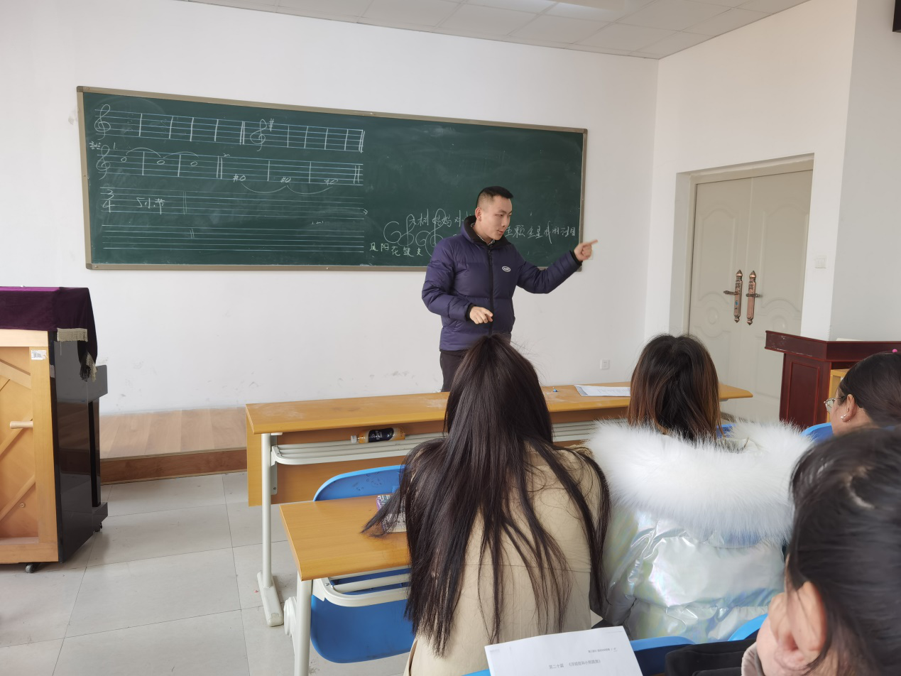 韩华老师和权璐老师利用午休时间在钢琴教室里对同学们进行乐理和弹唱知识的悉心指导,教给同学们在面试中抽到弹唱题型时的应对措施和小技巧。