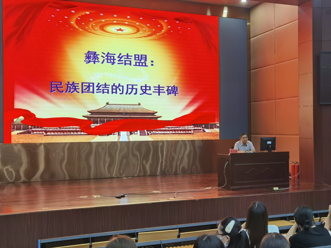 2021年时值我党成立100周年,为积极贯彻落实党中央、省委、州委和学校党委要求,扎实推进党史学习教育,做到学史明理、学史增信、学史崇德、学史力行,学前教育系于2021年6月21日晚7:30,组织系部2019级169名学生在学术报告A厅进行了第一次党史集中学习。本次党史学习采用主题党课的形式,由学前教育系党支部书记魏衍辉主讲,题为“彝海结盟:民族团结的历史丰碑”。