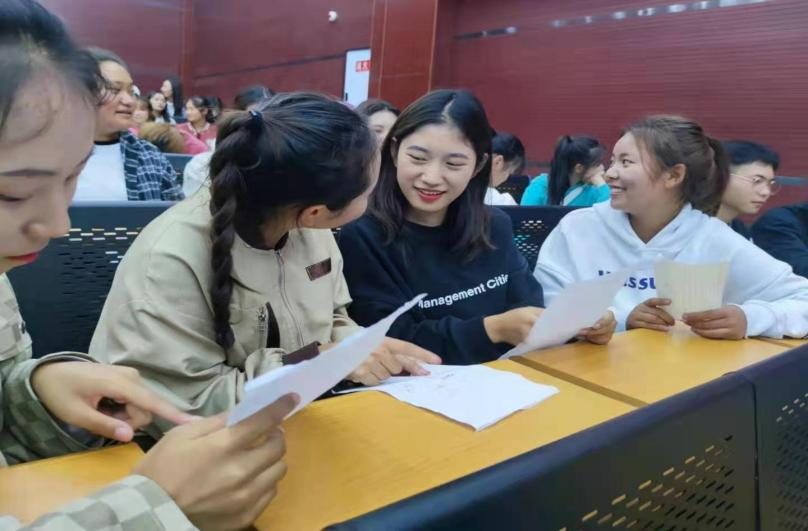 讲座第三个环节,彭老师通过简单的游戏,让大家敞开心扉,真心交友,以便进行专业知识交流。当音乐响起,同学们踏着旋律拿起纸笔“找朋友”,现场气氛活跃。