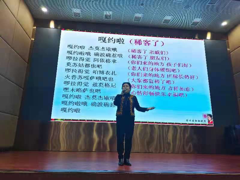 讲座伊始,彭光秀老师献上一首彝家的迎宾曲《嘎约啦》,音乐声一响起,台上台下彼此的距离就拉近了。随后,大家为庆祝新中国72华诞齐唱《我和我的祖国》,在歌声中拉开了本次讲座的序幕。
