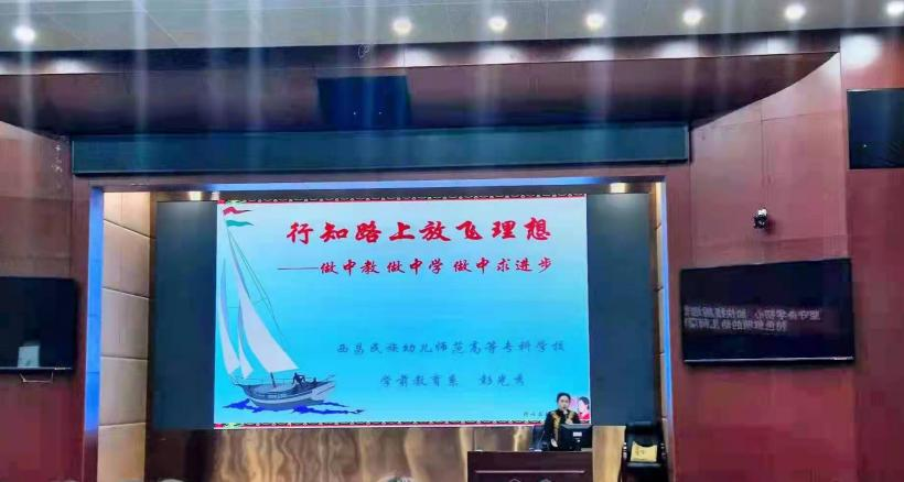 本次讲座由四川省特级教师、国家二级心理咨询师、国家家庭教育高级指导师、彭光秀行知教育工作室主持人、西昌民族幼专心理高级讲师、中国陶行知研究会生活教育科研专家彭光秀进行宣讲。讲座以陶行知先生教育思想“做中教、做中学、做中求进步”为主线,将学前教育师范生德育教育融入其中,取得了良好反响。