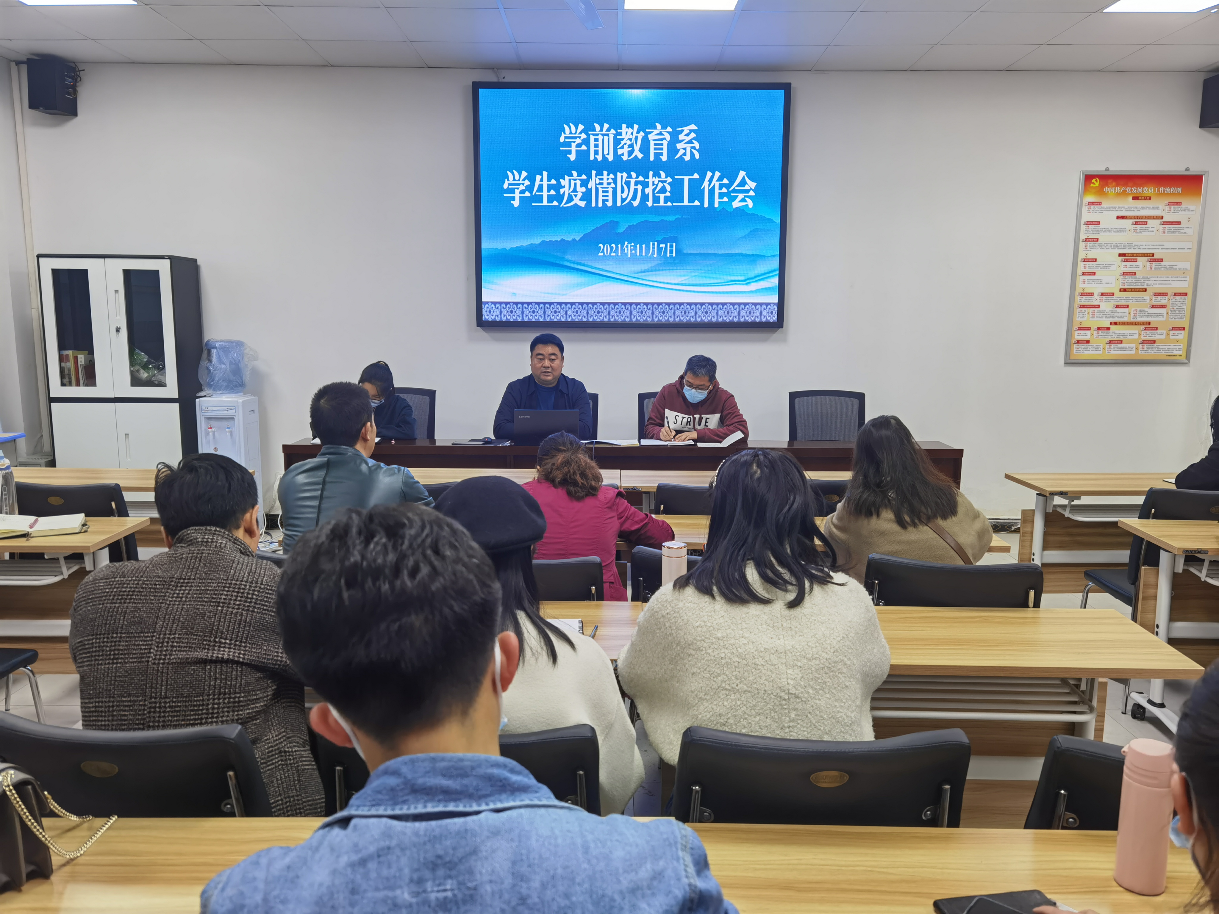 为贯彻落实四川省教育系统新冠肺炎疫情防控工作视频调度会、凉山州教育系统新冠疫情防控工作会及学校新冠肺炎疫情防控工作安排部署会的相关会议精神,学前教育系于11月7日下午6:00起至晚上9:00,分别召开了系部学生疫情防控工作会、学生疫情防控主题班会及线上新冠疫情防控安排部署会等系列会议。