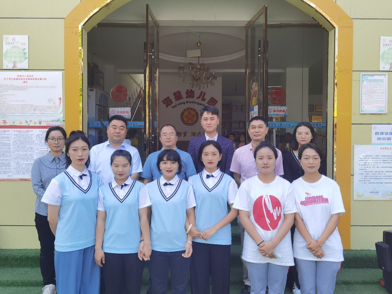 随后,王晓东副校长一行到西昌天晨幼儿园和海星幼儿园走访调研,就实习生实习情况与幼儿园所负责人进行交流,并关心慰问实习生,了解学生实习情况和存在问题和困难。