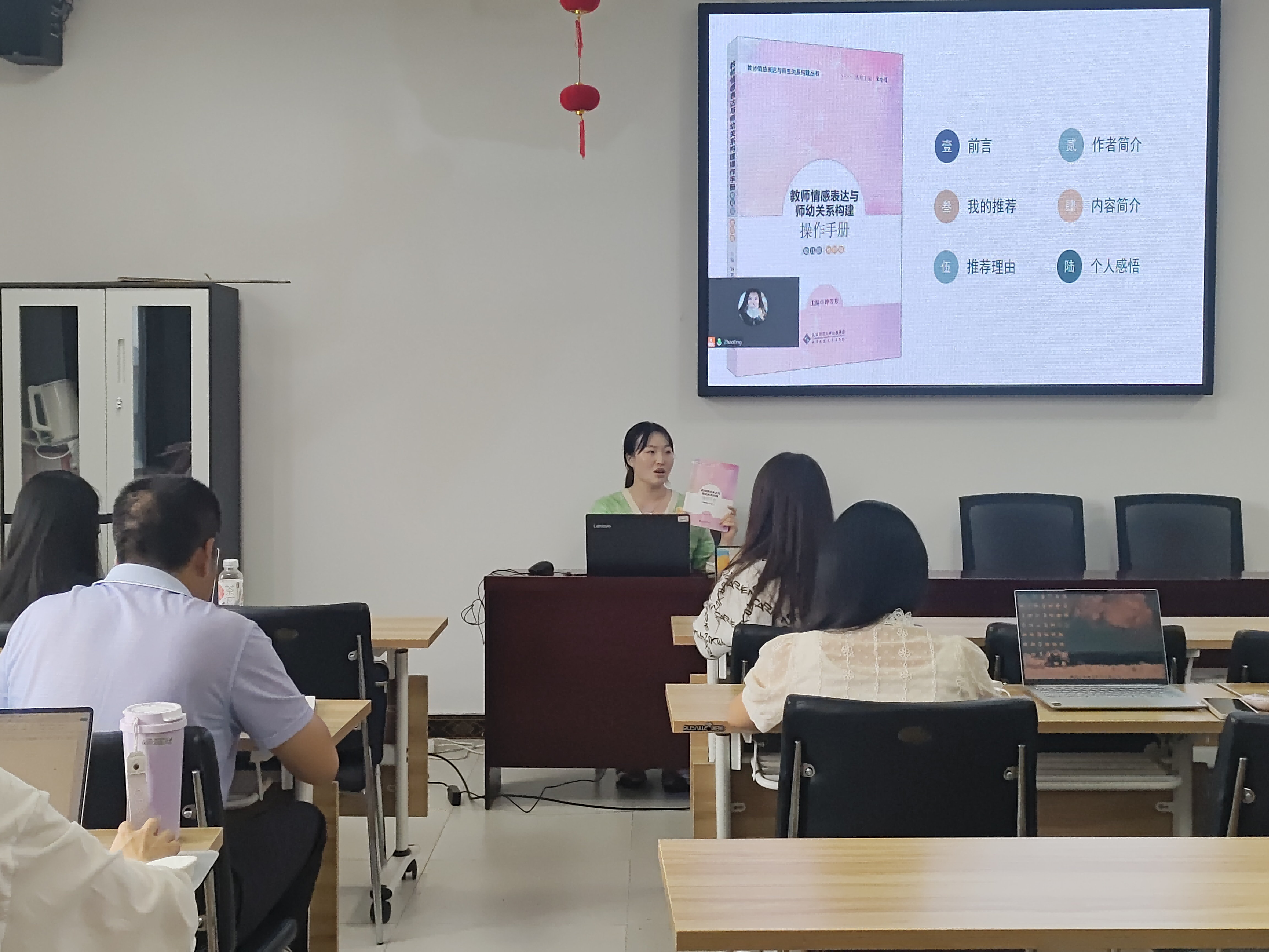 书籍分享环节,黄志娴老师对《教师情感表达与师生关系构建》一书进行分享——以师幼关系为切入点,利用心理学进行分析,解释作为幼儿园老师应该怎样去调节自身的情绪。黄老师还提到该书不仅能关注幼儿的情感表达,还能提高教师的自我修养,汲取相应的能量。