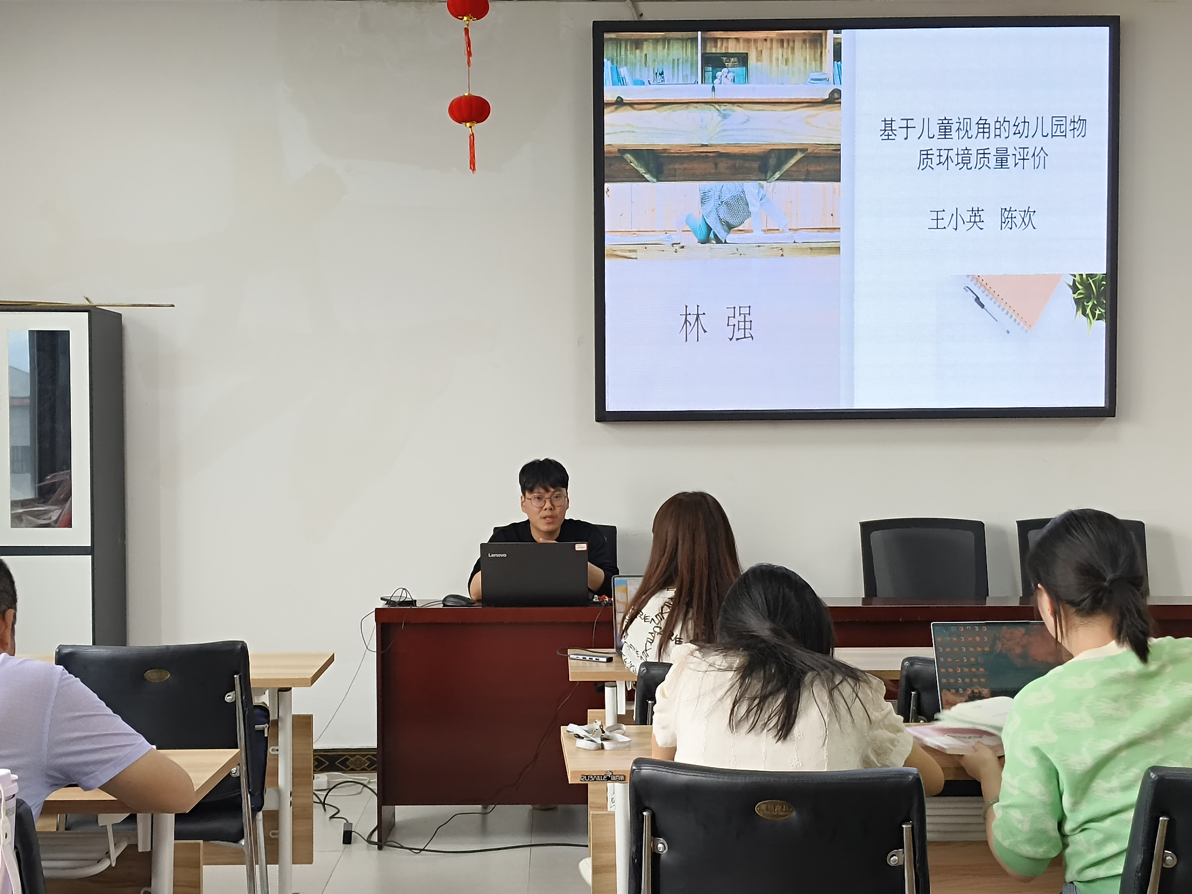 论文分享环节,学前教育系林强老师对《基于儿童视角的幼儿园物质环境质量评价》一文进行分析解读——该论文通过儿童视角对幼儿园的环境进行抽样,进行多维度的评价辨析。学前教育从业者要基于儿童的视角去看待问题,在环境创设、手工制作等课程中可以借鉴其评价方式,进行分层分类考核。