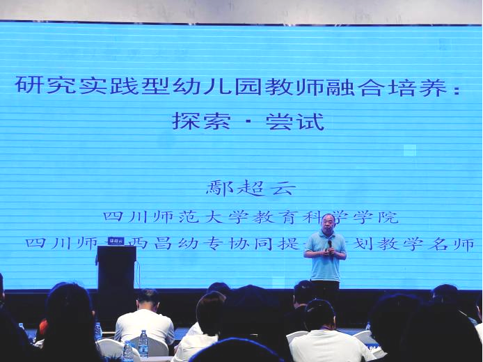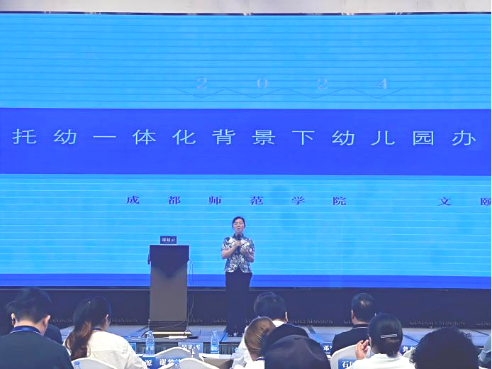 5月22日下午,三场专家主旨报告为会议注入了前沿理念与实践经验。四川师范大学鄢超云教授以“研究实践型幼儿园教师融合培养”为主题,探讨了理论与实践双向赋能的教育模式;成都师范学院文颐教授分析了“托幼一体化背景下幼儿园办托之准备”,提出资源整合与师资培养的具体路径;徐州幼儿师范高等专科学校刘曲副教授聚焦“产教融合新生态”,呼吁校企协同构建育人共同体。报告内容紧扣行业痛点,为参会者提供了创新思路与解决方案。