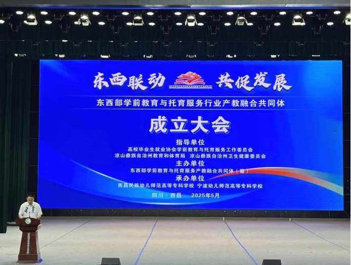 2025年5月21日至22日,由高校毕业生就业协会学前教育与托育服务工作委员会、凉山州教育和体育局、凉山州卫生健康委员会指导,西昌民族幼儿师范高等专科学校和宁波幼儿师范高等专科学校与联合承办的“东西部学前教育与托育服务行业产教融合共同体成立大会暨第一届理事会第一次会议”在四川西昌圆满举行。会议以“东西联动 共促发展”为主题,吸引了来自全国高校、幼儿园及托幼机构的代表齐聚一堂,共商产教融合新路径,共绘学前教育与托育服务高质量发展蓝图。