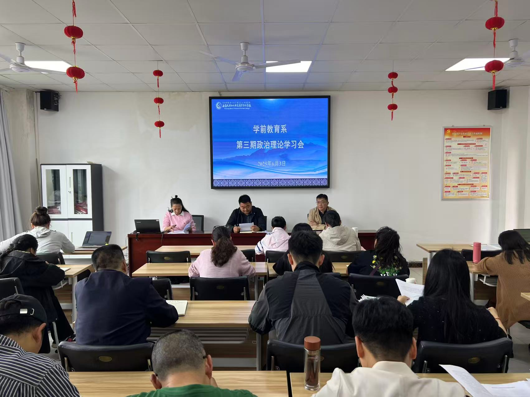 为强化教职工思想政治素养,筑牢师德根基,2025年6月3日下午,西昌民族幼专学前教育系在第四教学楼4308会议室召开本学期第三期政治理论学习会。